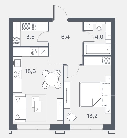 2-комн · 56 м² · 13 эт.