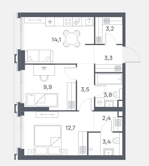 2-комн · 57 м² · 13 эт.