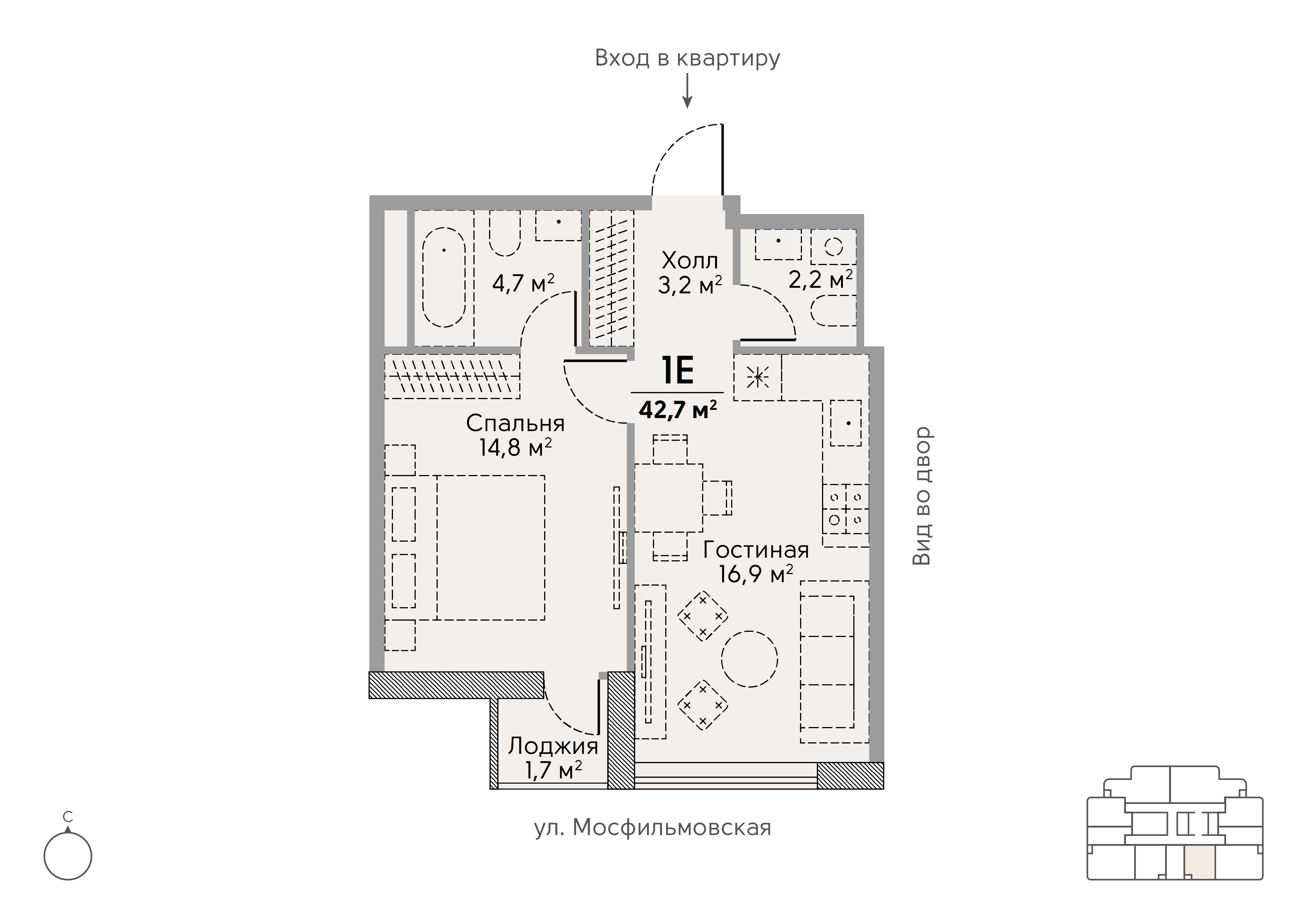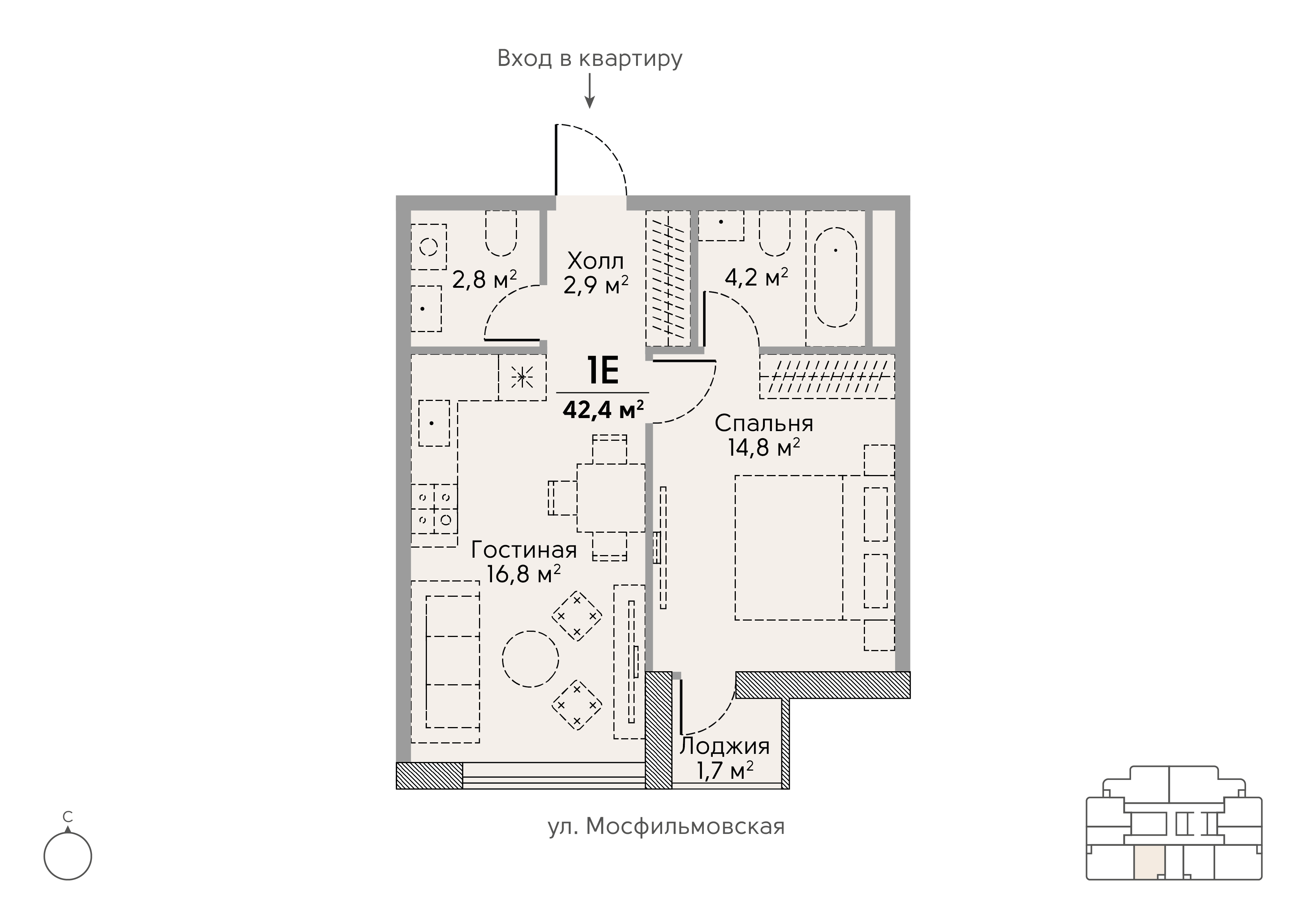 1-комн · 42 м² · 18 эт.