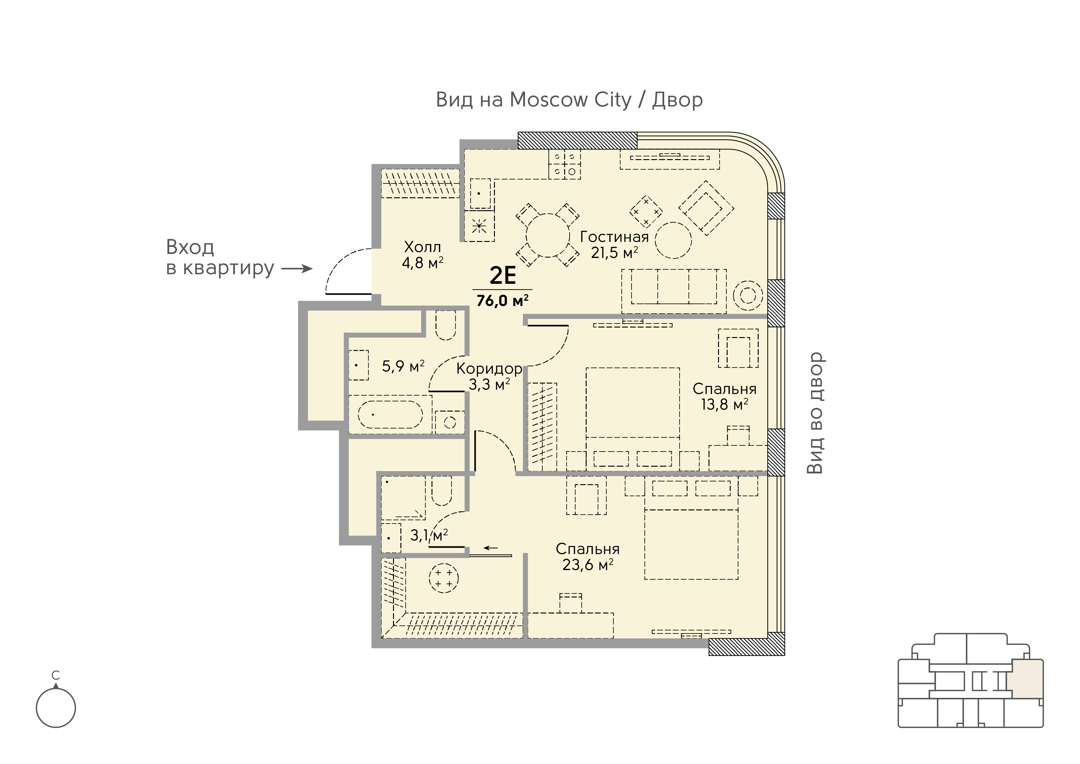 2-комн · 76 м² · 24 эт.
