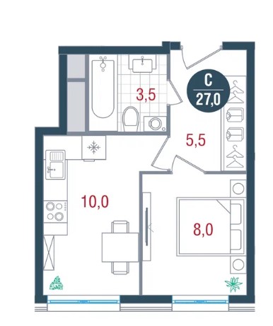 Студия · 27 м² · 26 эт.