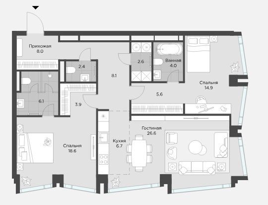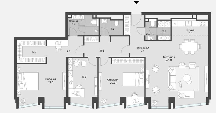 Минимальная площадь: 68,4 м² Максимальная площадь: 143,0 м²