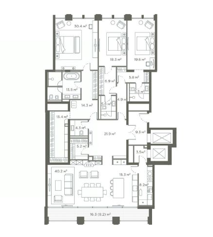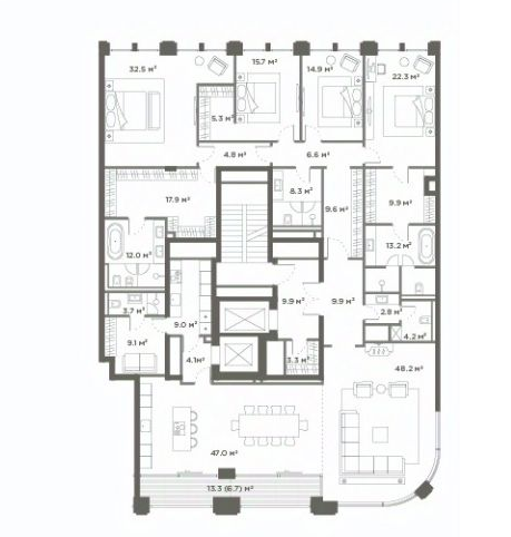 Минимальная площадь: 254,2 м² Максимальная площадь: 331,6 м²