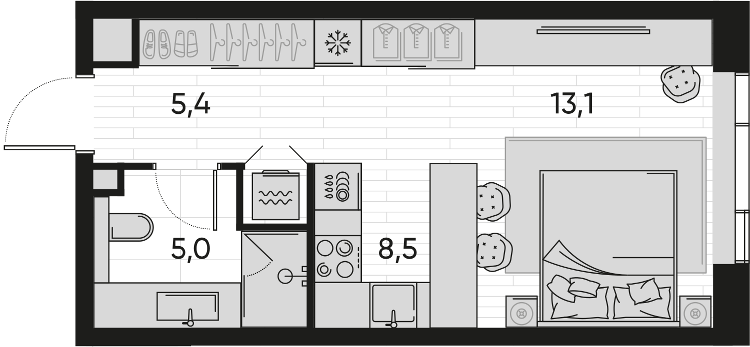 1-комн · 30 м² · 13/22