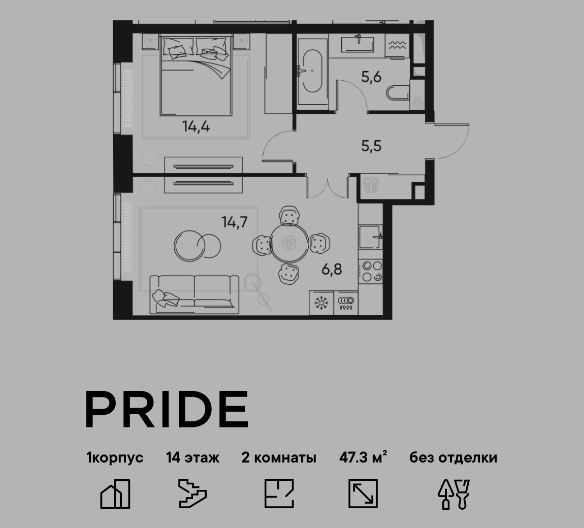 2-комн · 47 м² · 14/22