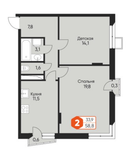 2-комн · 58 м² · 4 эт.