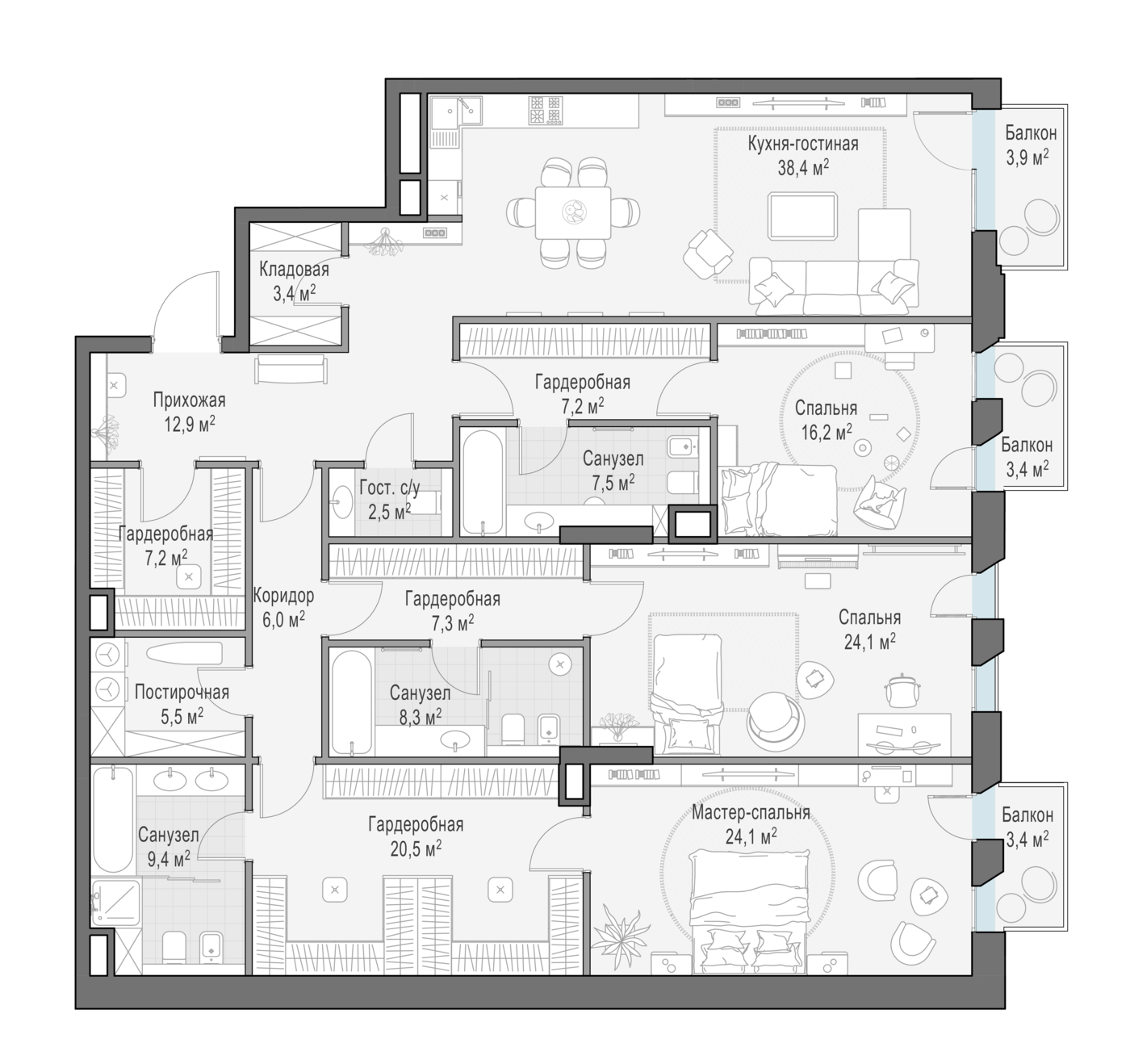Минимальная площадь: 204,0 м² Максимальная площадь: 782,0 м²