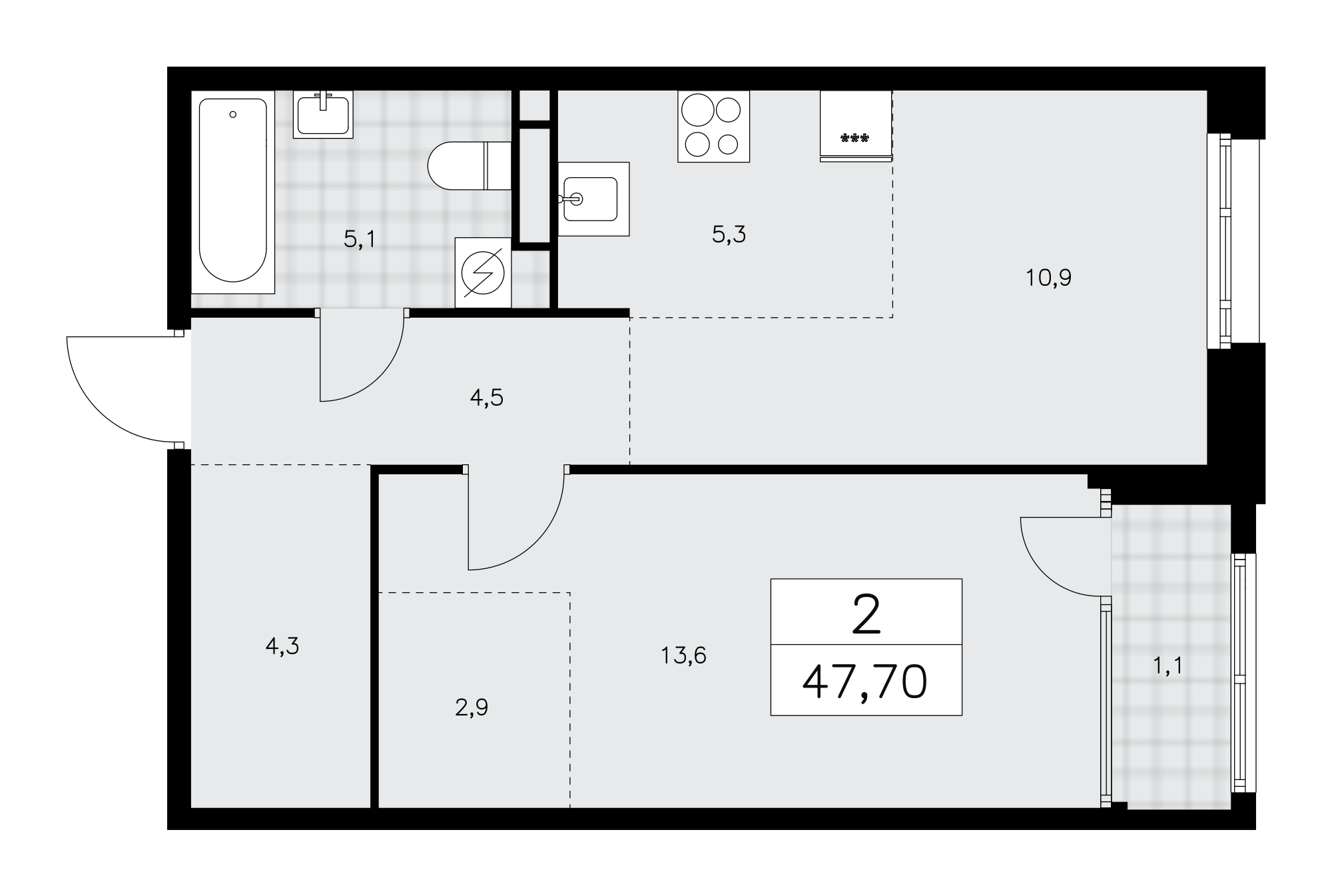 2-комн · 48 м² · 16 эт.