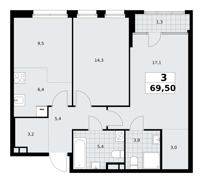 3-комн · 70 м² · 10 эт.
