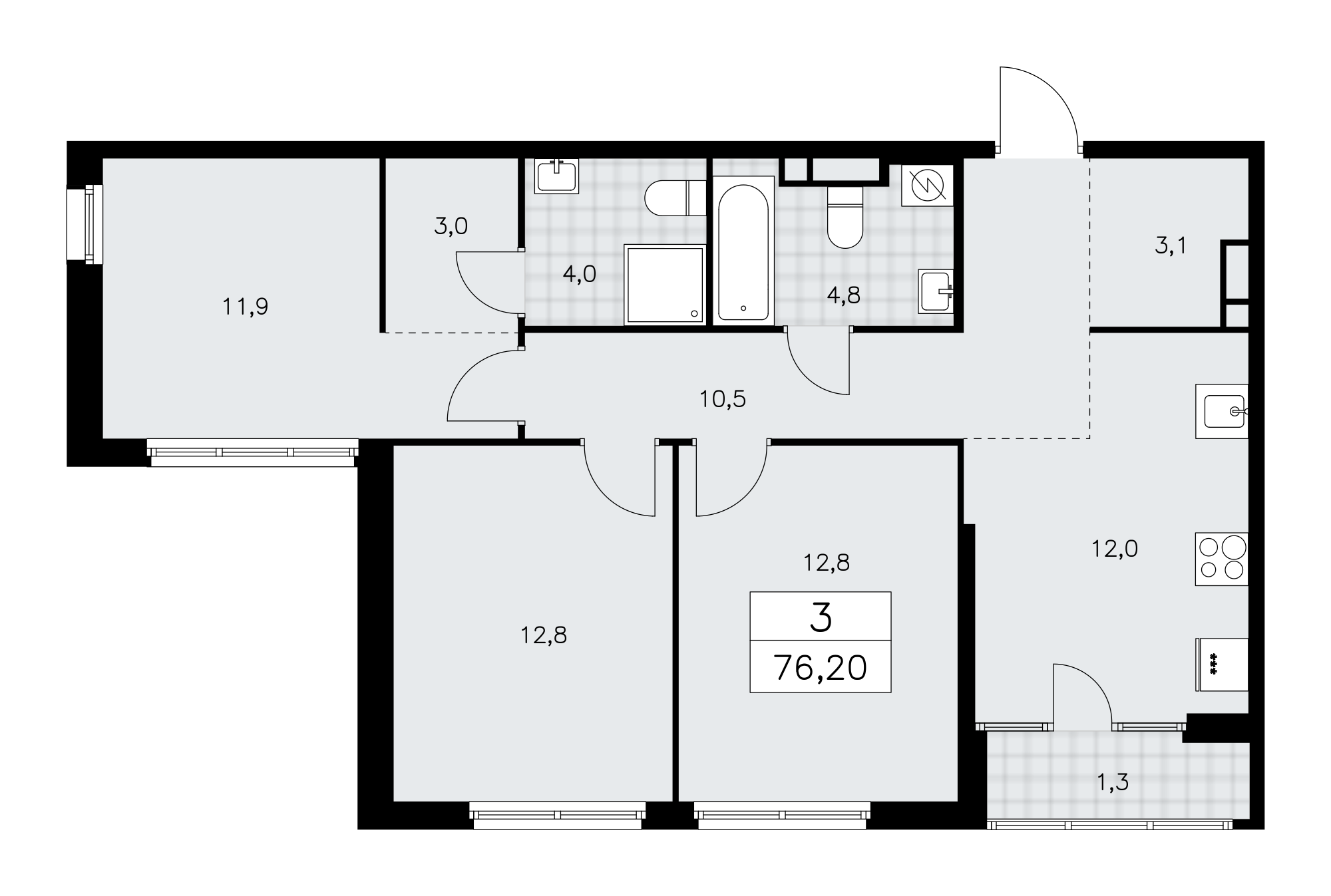 3-комн · 76 м² · 15 эт.