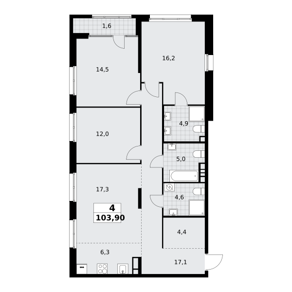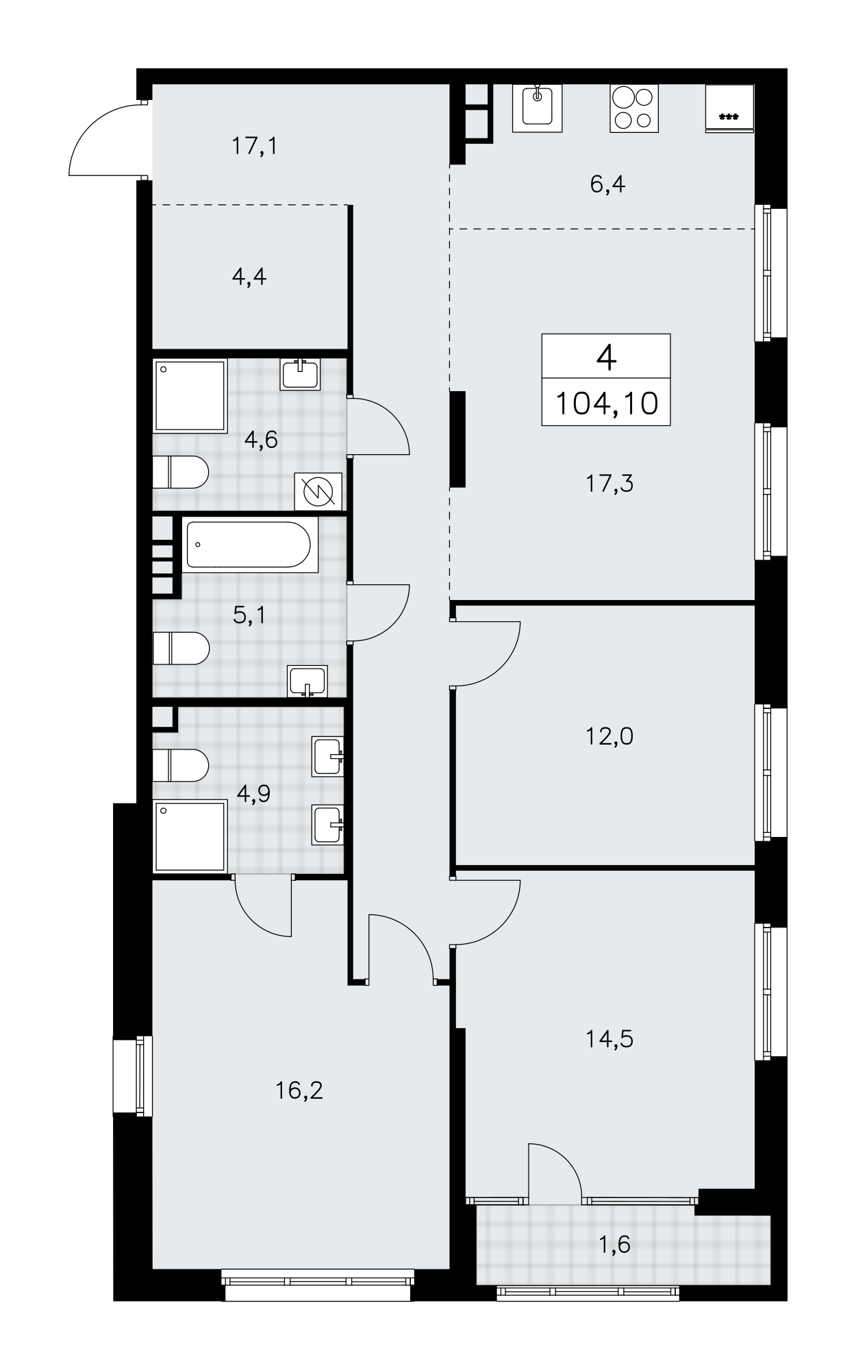 4-комн · 104 м² · 7 эт.