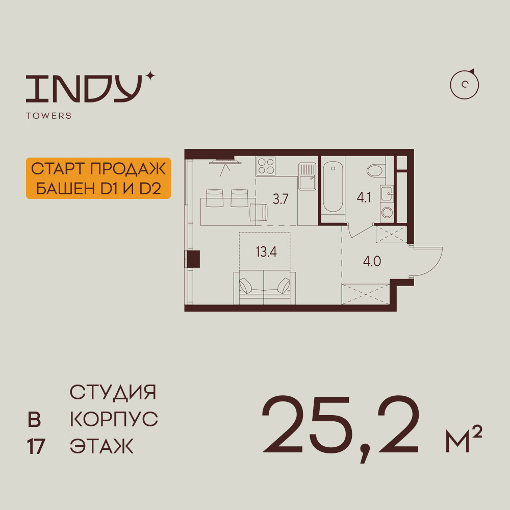 Студия · 25 м² · 17 эт.