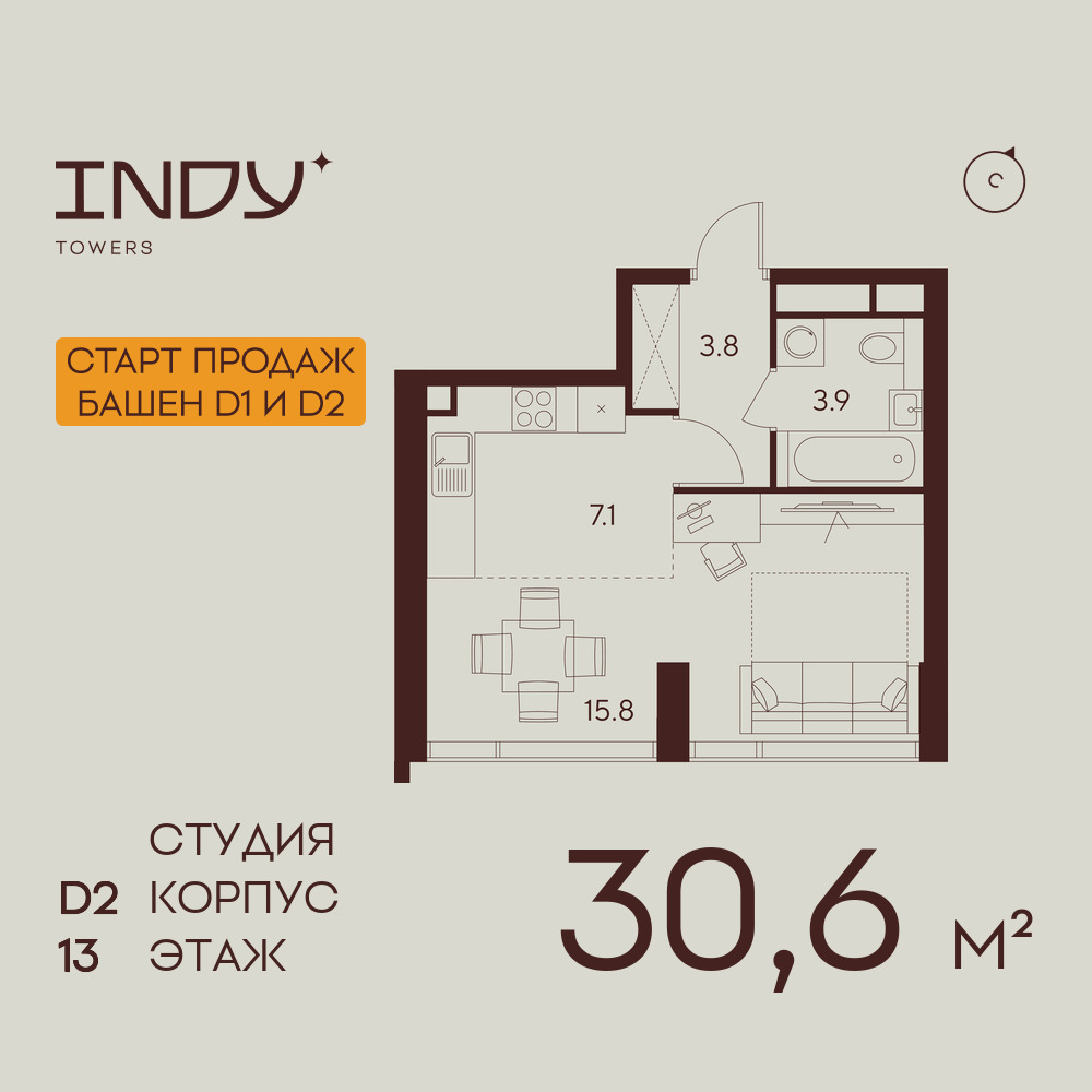 Студия · 31 м² · 13 эт.