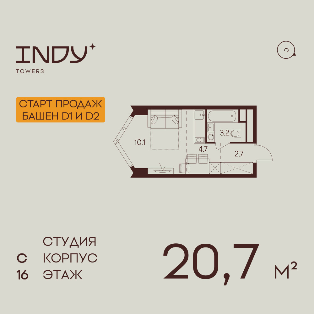 Студия · 21 м² · 16 эт.