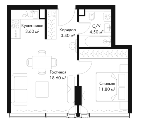 1-комн · 41 м² · 34 эт.