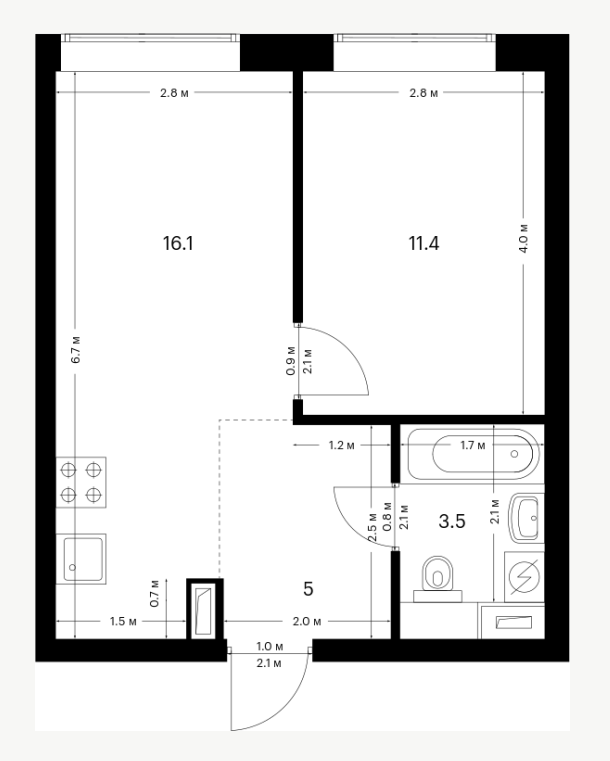 1-комн · 38 м² · 31 эт.