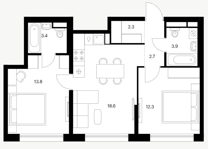 2-комн · 57 м² · 23 эт.