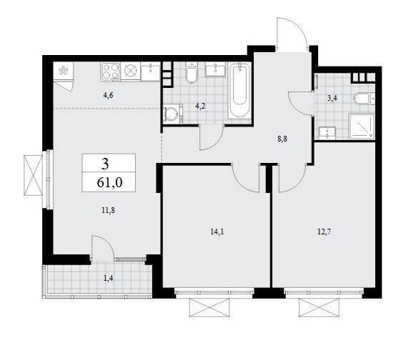 3-комн · 61 м² · 15 эт.