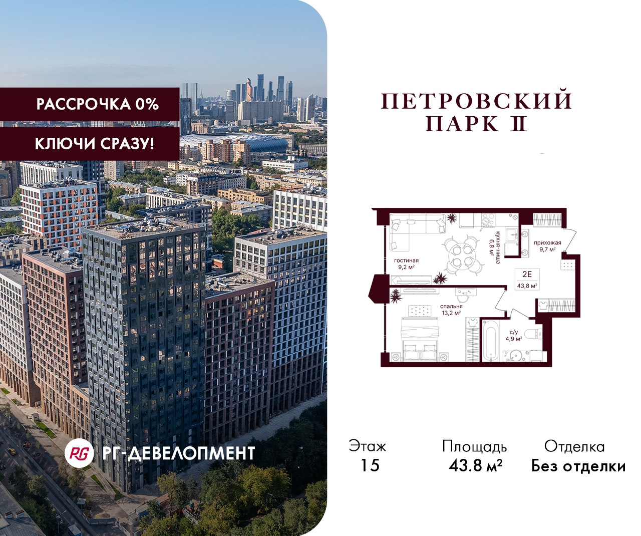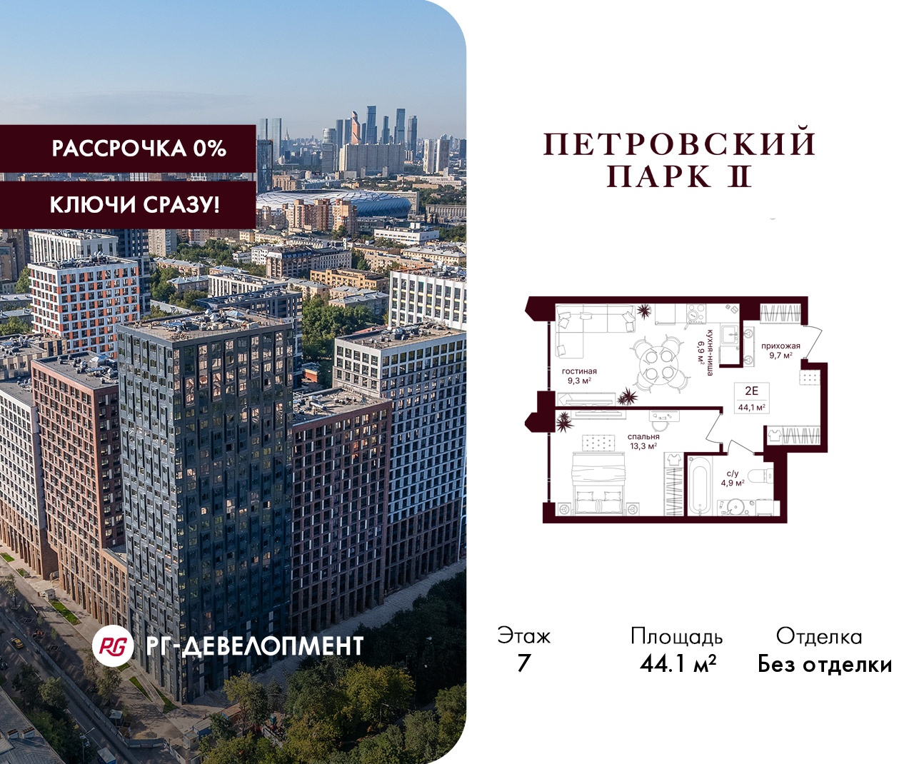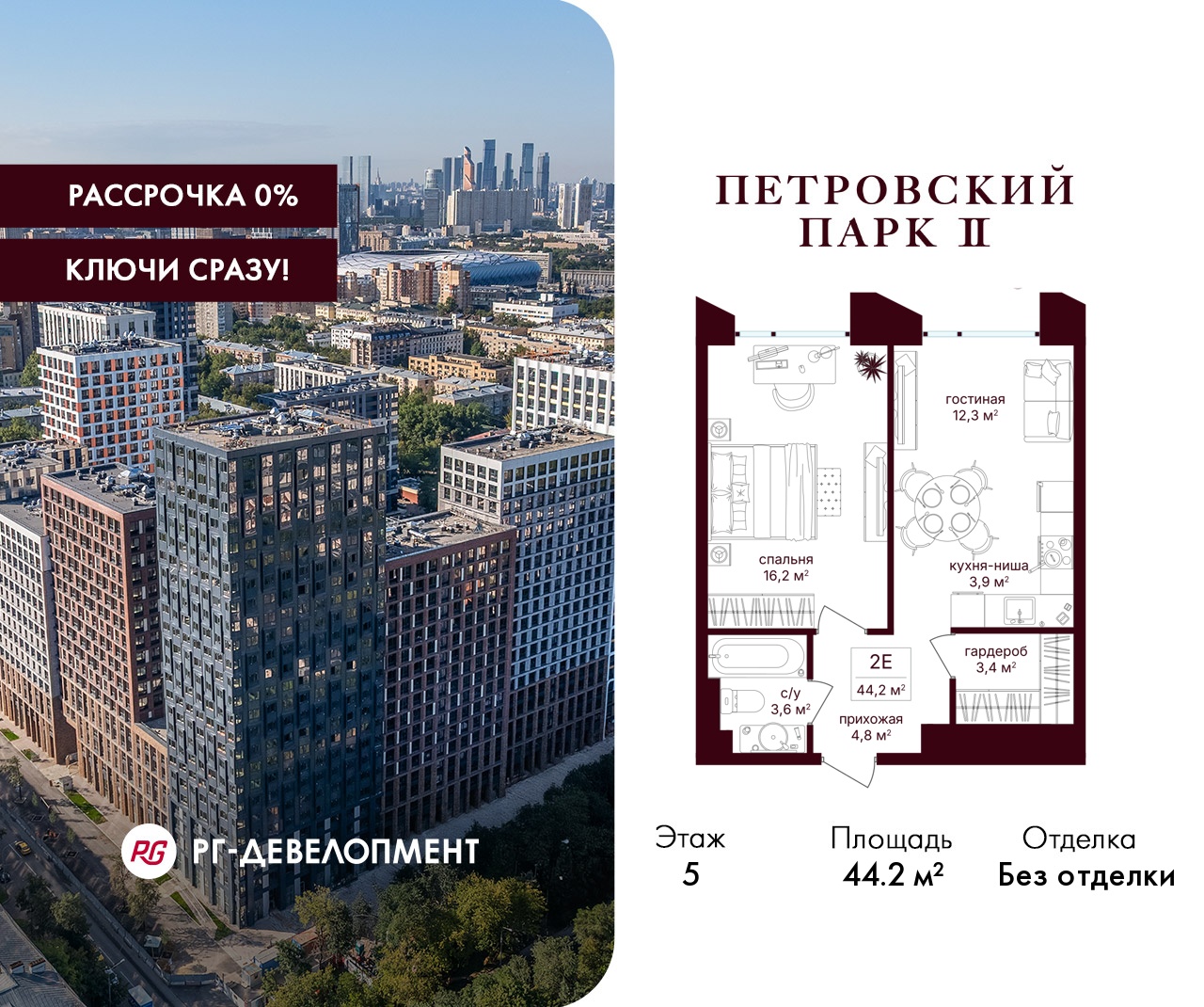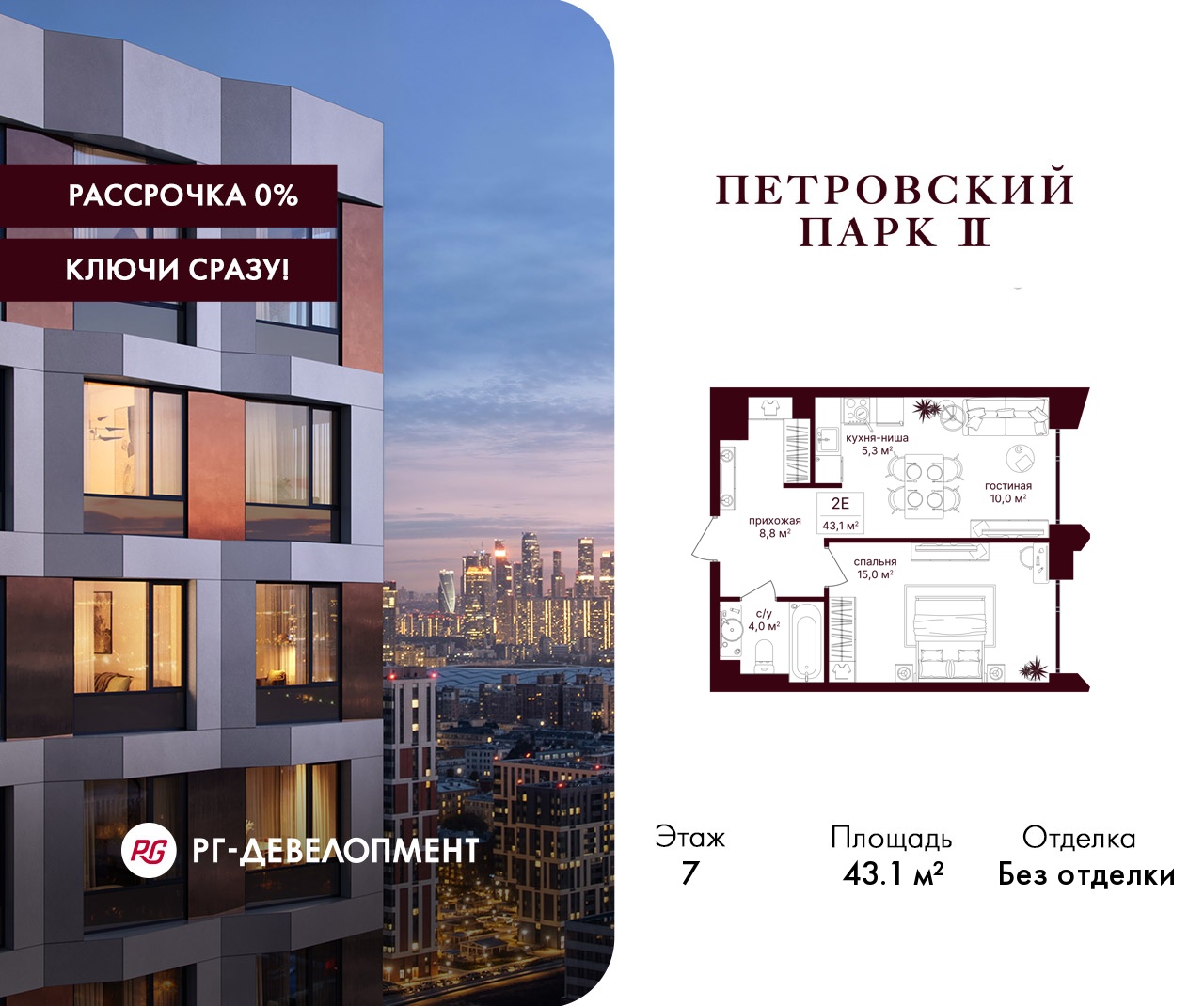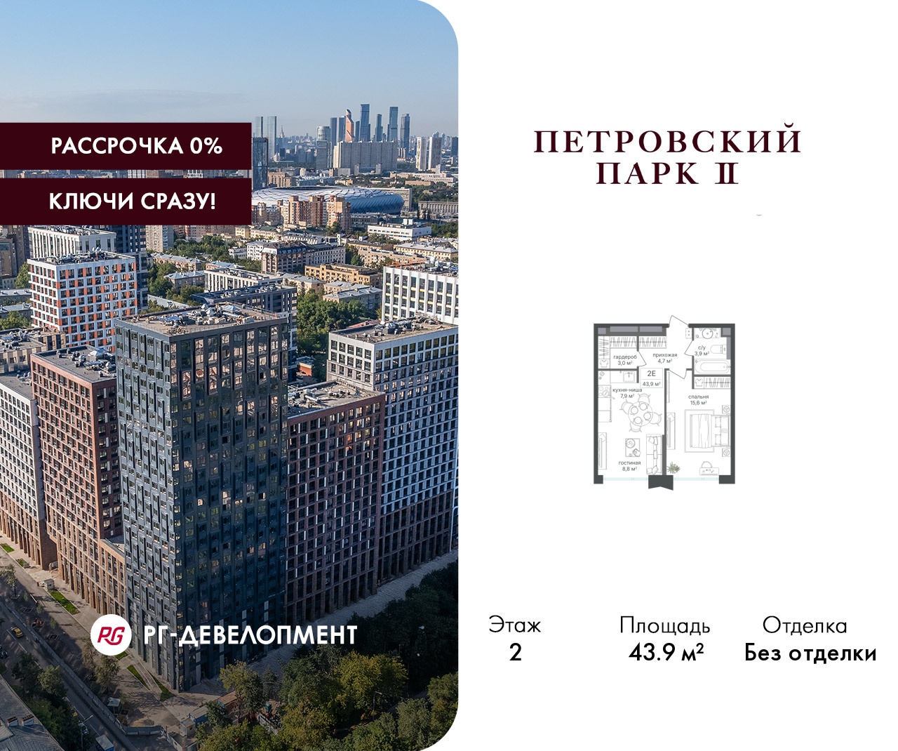 ЖК "Петровский парк II" - продолжение одноименного проекта от РГ-Девелопмент, архитектуру проекта бизнес-класса разработало московское бюро Syntaxis. Восьмисекционный дом отделан стеклофибробетоном, стемалитом и фасадными панелями под кирпич. Секции имеют разную высоту от 15 до 25 этажей. Первый этаж не жилой, предназначен для коммерческих помещений и частного детского сада на 60 воспитанников. В подземных этажах разместят паркинг на 330 машиномест и 186 кладовых. Вход в комплекс осуществляется через 1 и 5 секции, в них разместят лобби с высотой потолка 5 м. Для жителей дома организуют отельный сервис, к их услугам будут консьержи, постаматы, работая зона для встреч и детская комната.