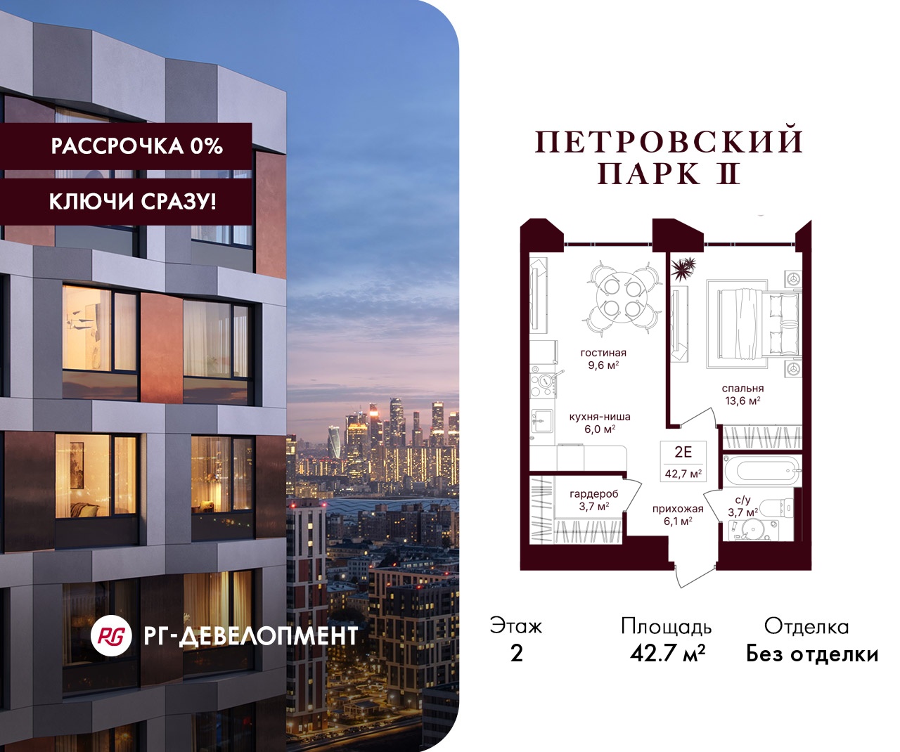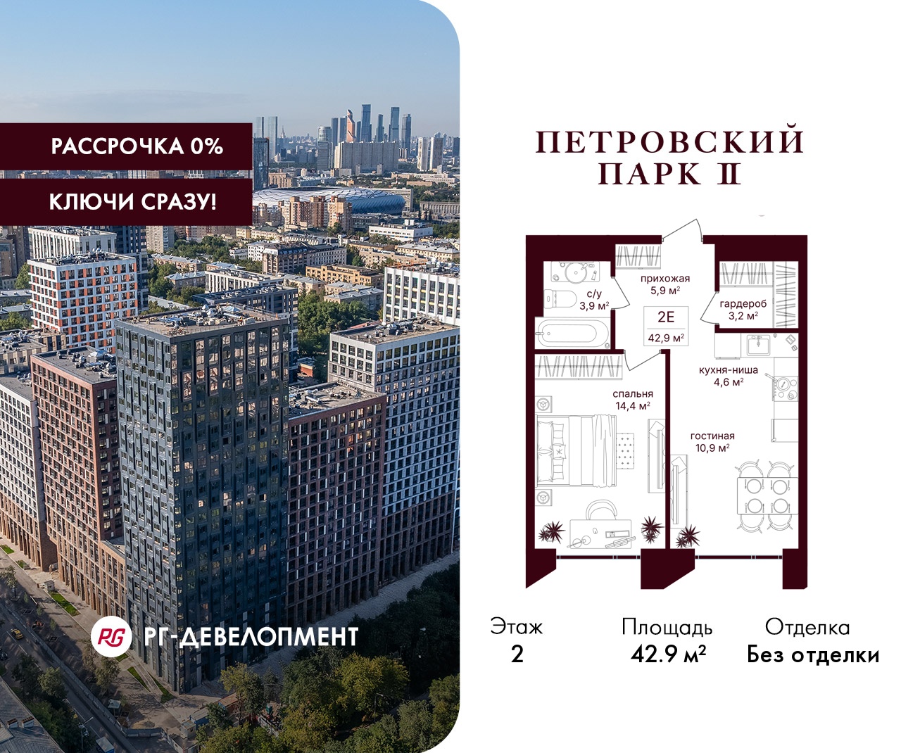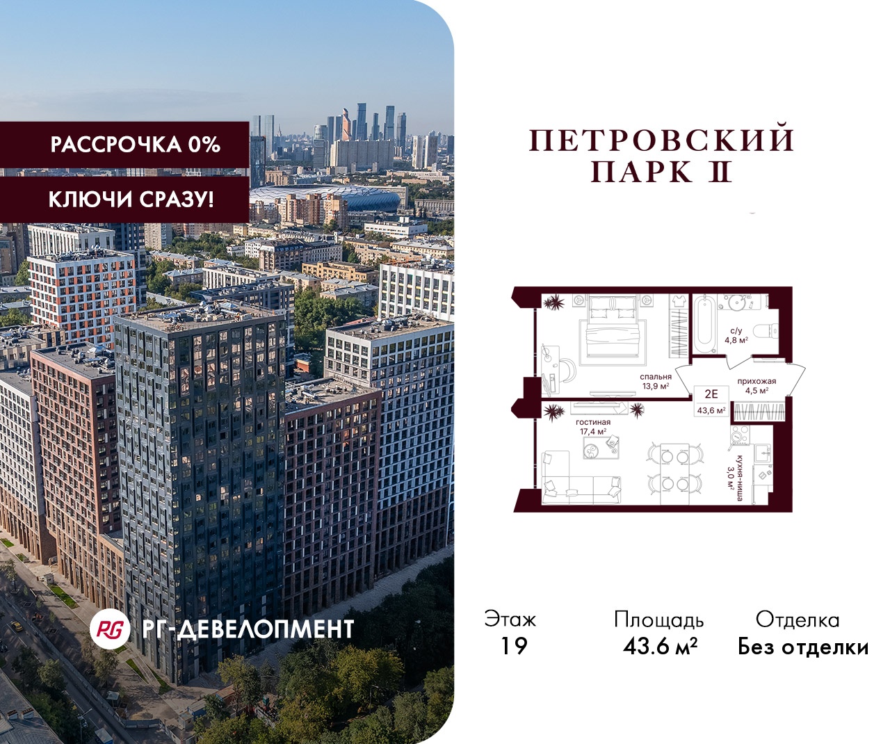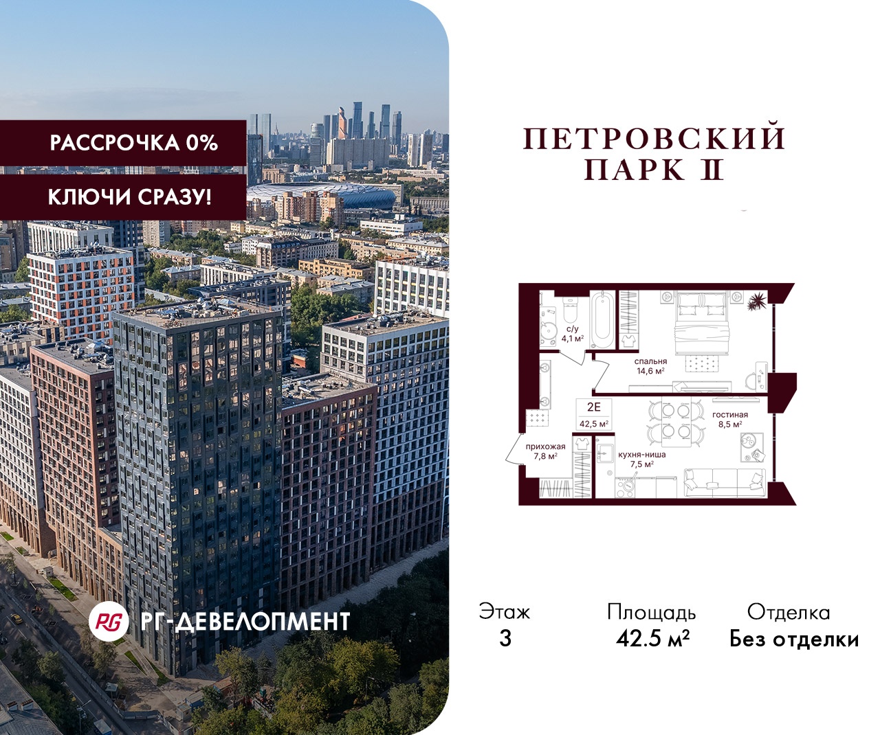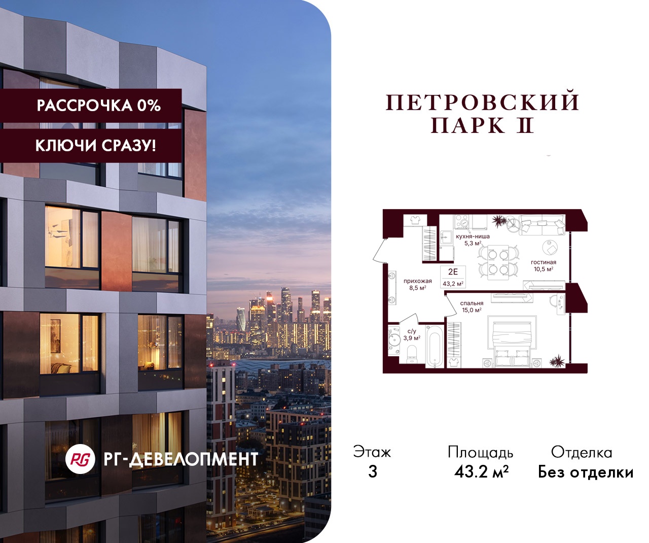 ЖК "Петровский парк II" - продолжение одноименного проекта от РГ-Девелопмент, архитектуру проекта бизнес-класса разработало московское бюро Syntaxis. Восьмисекционный дом отделан стеклофибробетоном, стемалитом и фасадными панелями под кирпич. Секции имеют разную высоту от 15 до 25 этажей. Первый этаж не жилой, предназначен для коммерческих помещений и частного детского сада на 60 воспитанников. В подземных этажах разместят паркинг на 330 машиномест и 186 кладовых. Вход в комплекс осуществляется через 1 и 5 секции, в них разместят лобби с высотой потолка 5 м. Для жителей дома организуют отельный сервис, к их услугам будут консьержи, постаматы, работая зона для встреч и детская комната.