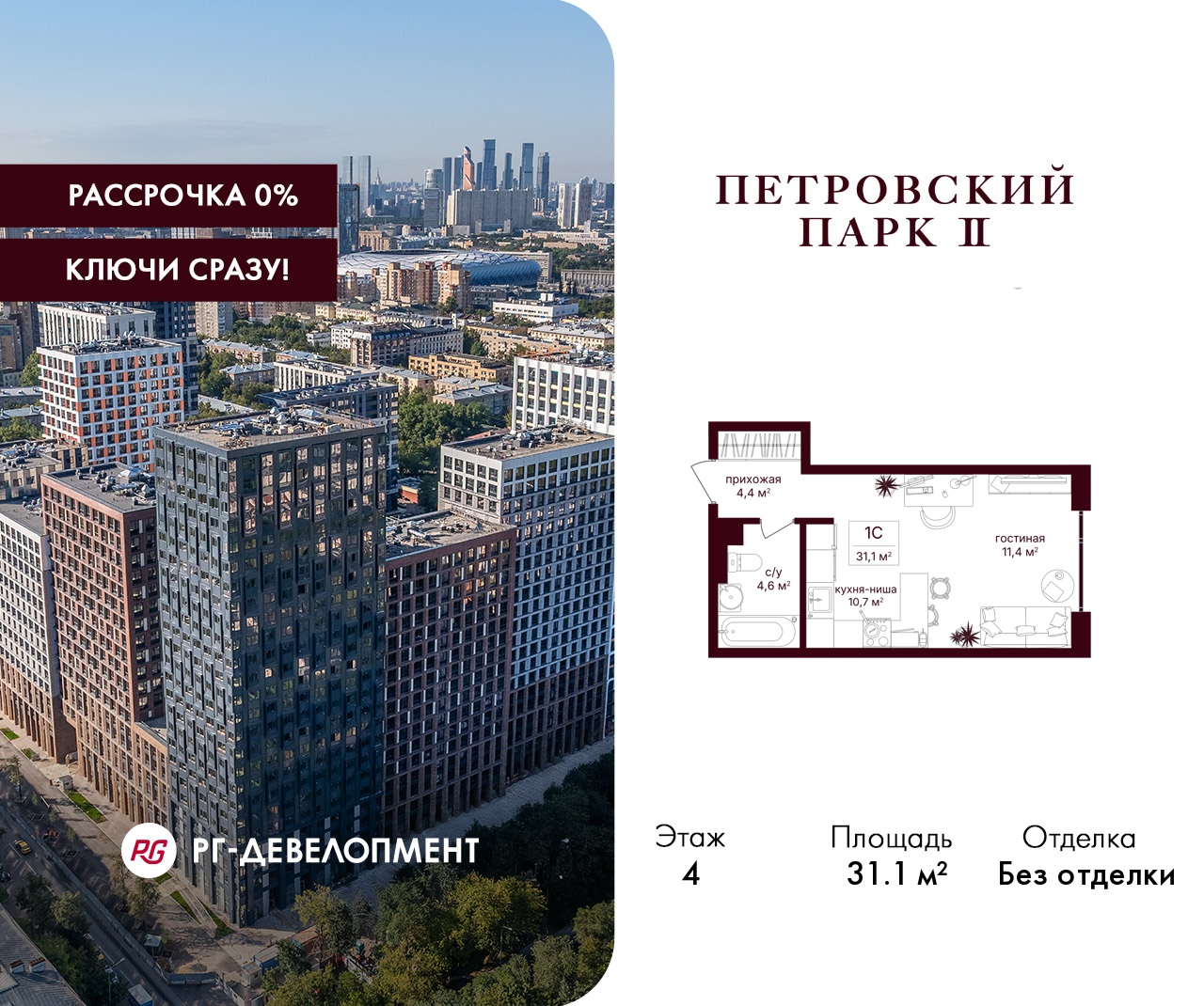 Студия · 31 м² · 4/25