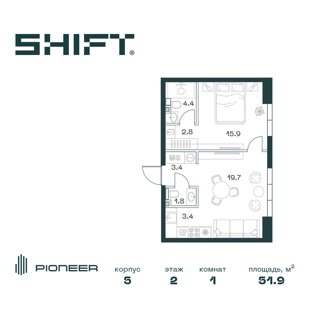 ЖК Shift от компании "Пионер" будет состоять из пяти жилых корпусов, четыре из которых расположатся по периметру территории, начальной школы на 210 учеников и детского сада на 100 мест. Проект премиум-класса разработан бюро "Цимайло Ляшенко и партнеры", согласно представленной концепции квартиры получат панорамное остекление и террасы.