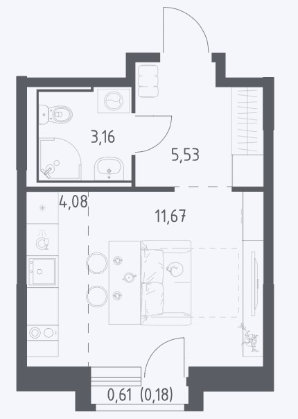 Студия · 25 м² · 19 эт.