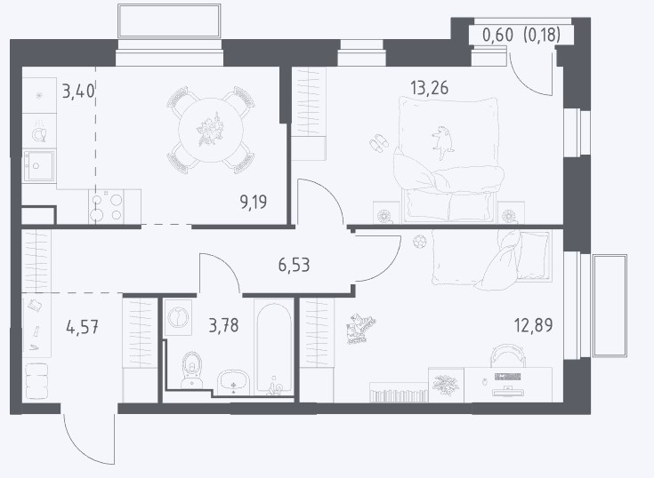 2-комн · 57 м² · 20 эт.