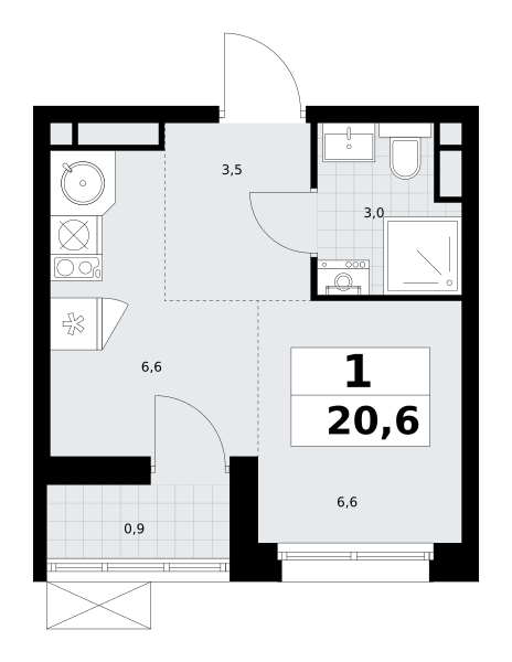 1-комн · 20 м² · 6/9