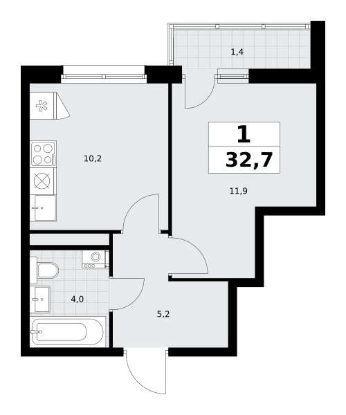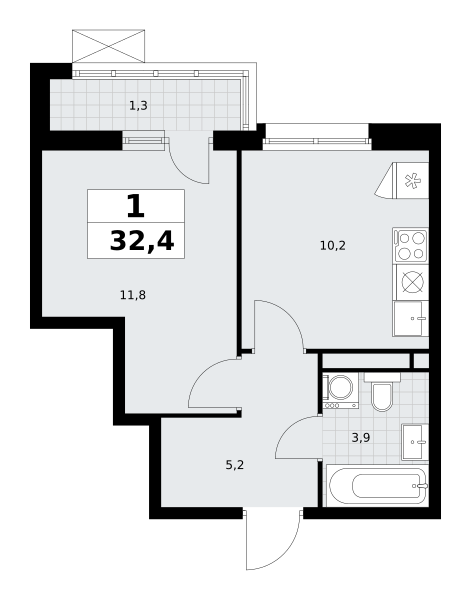 1-комн · 32 м² · 7/9