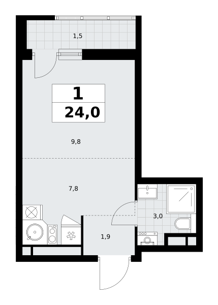 1-комн · 24 м² · 3/9