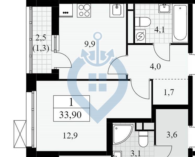 1-комн · 34 м² · 7/9