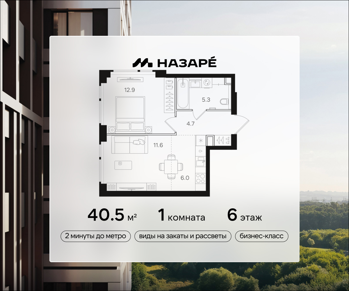 1-комн · 40 м² · 5/43