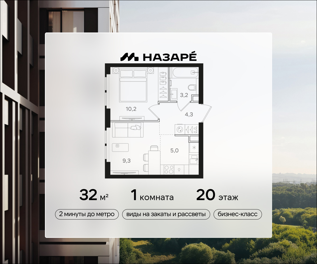 1-комн · 32 м² · 21/43