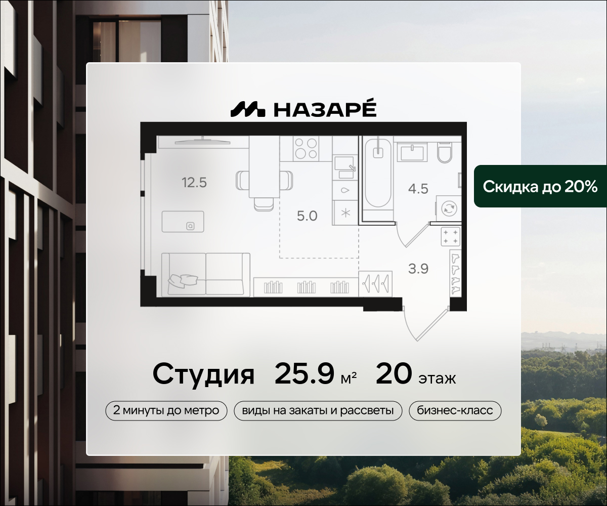 Студия · 26 м² · 20/43