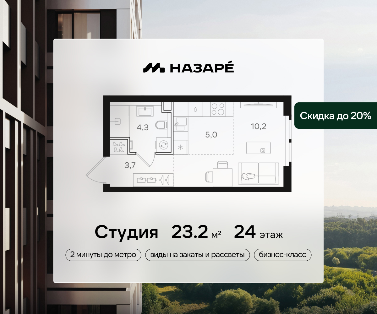 Студия · 23 м² · 24/43