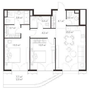 Минимальная площадь: 51,2 м² Максимальная площадь: 111,4 м²