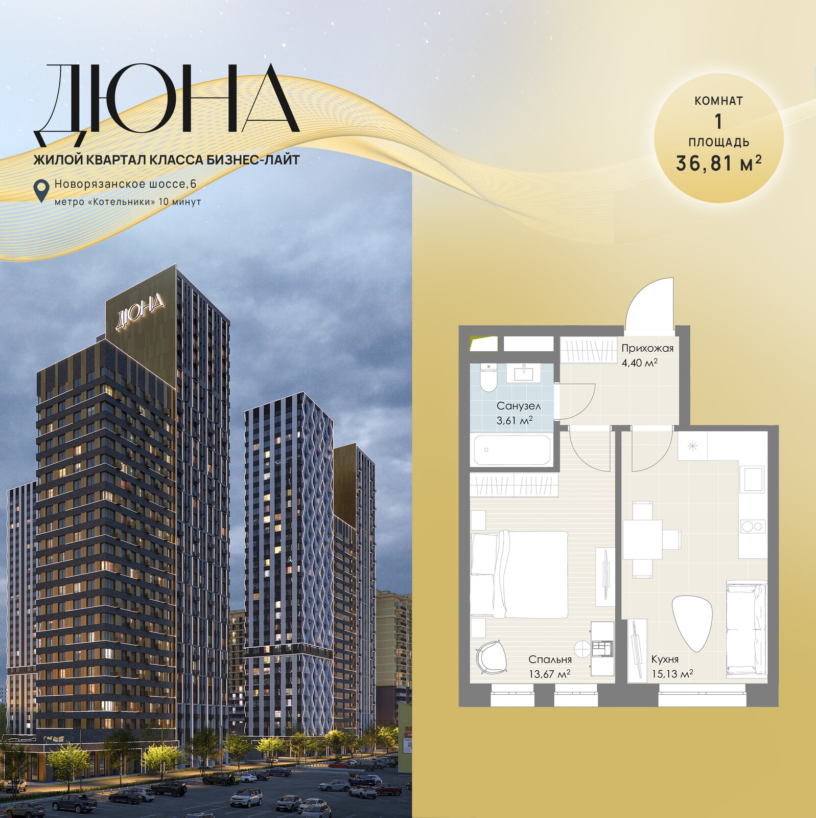 ЖК "Дюна" от Тренд-групп расположен в пешей доступности от станции метро "Котельники". Застройщик позиционирует комплекс как проект бизнес-лайта и кроме 13 жилых корпусов предлагает жителям два детских сада, школу, поликлинику. Площадь застройки займет почти 12 га. На первом этаже корпусов разместятся коммерческие помещения, суммарной площадью около 8 000 кв.м. Кроме консьерж-службы, круглосуточной охраны и благоустроенной придомовой зоны к услугам будущих жителей будут еще лапомойки, колясочные, просторные лобби с зонами ожидания и стойками для курьерских служб. В подземных паркингах ожидается около 3000 машино-мест и кладовые помещения.
