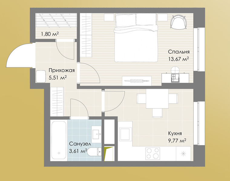 Студия · 27 м² · 19/30