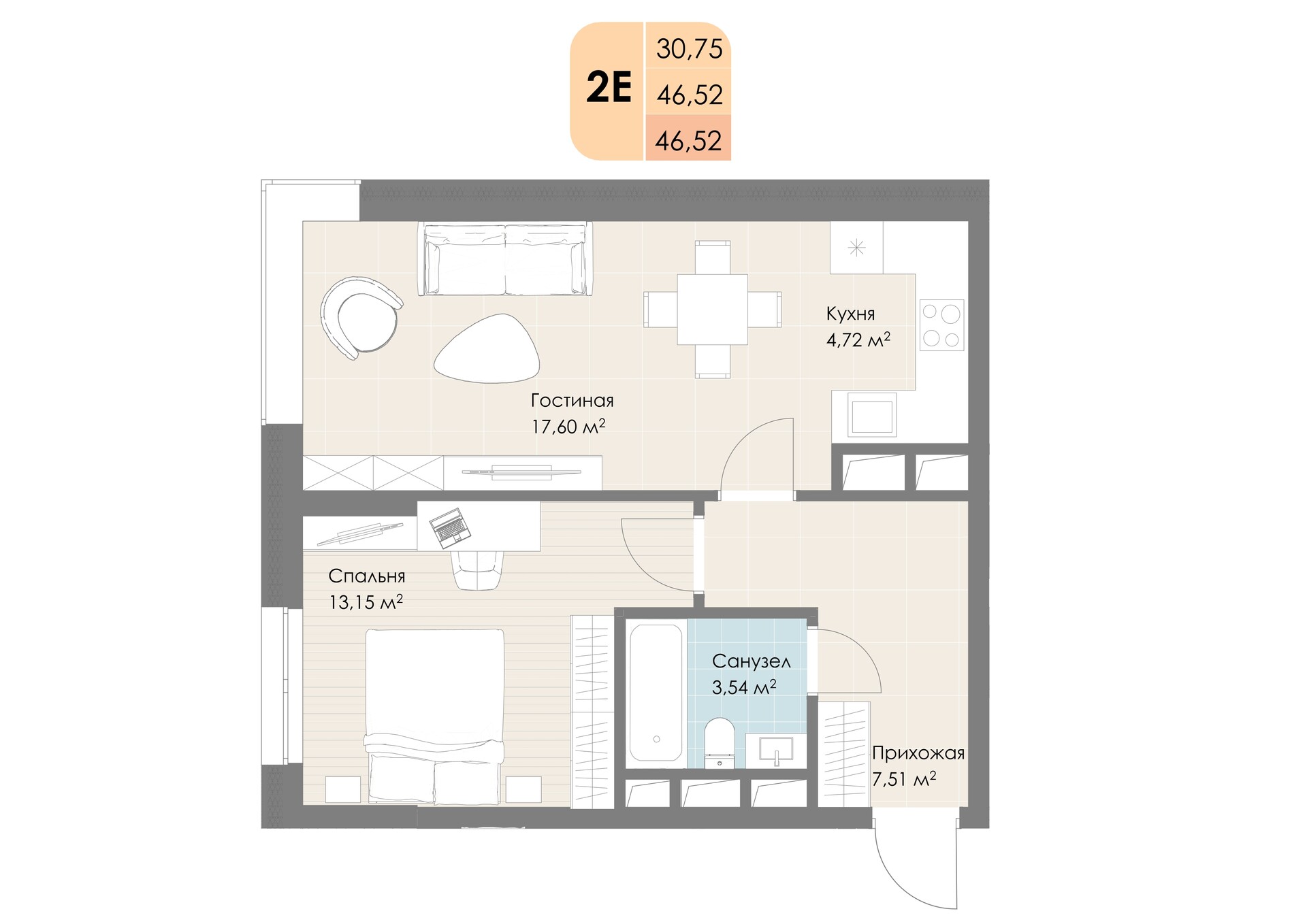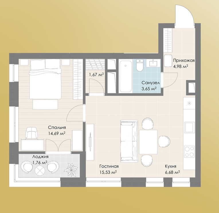 Студия · 49 м² · 28/30