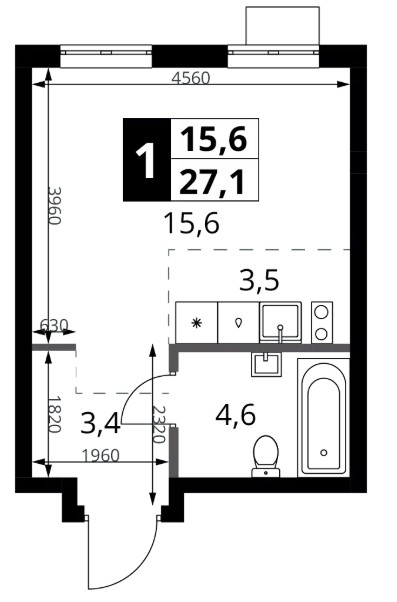 Студия · 27 м² · 2/18