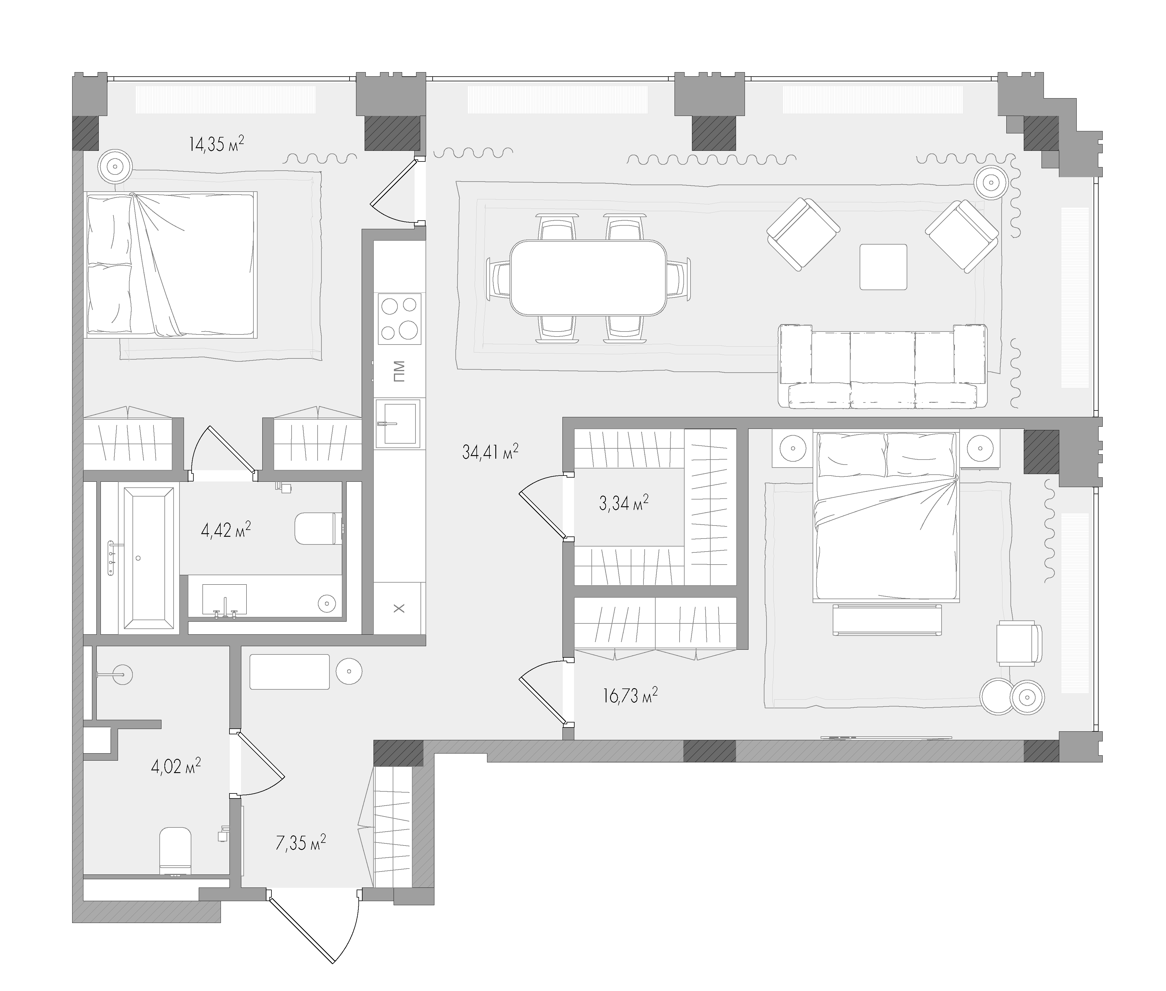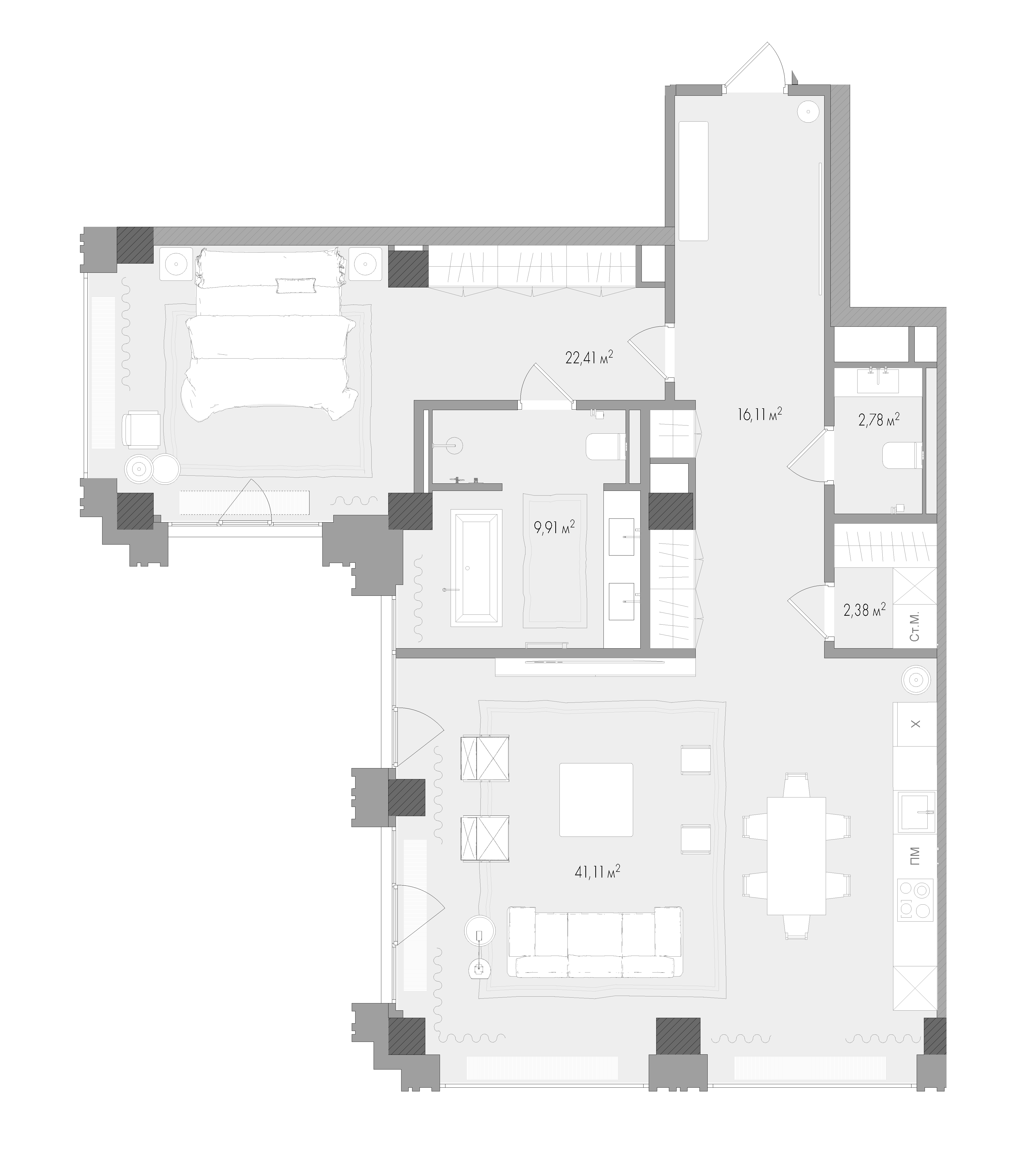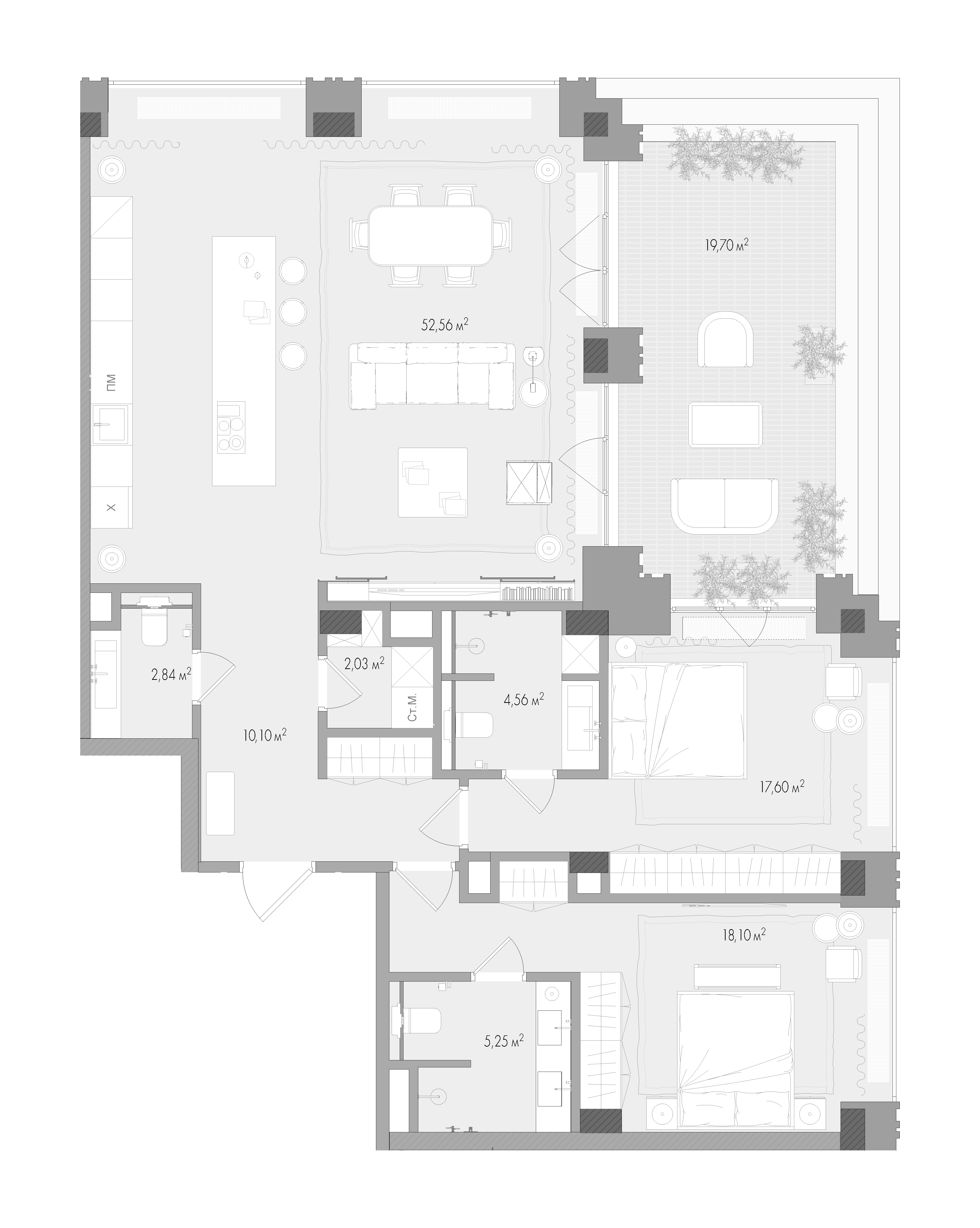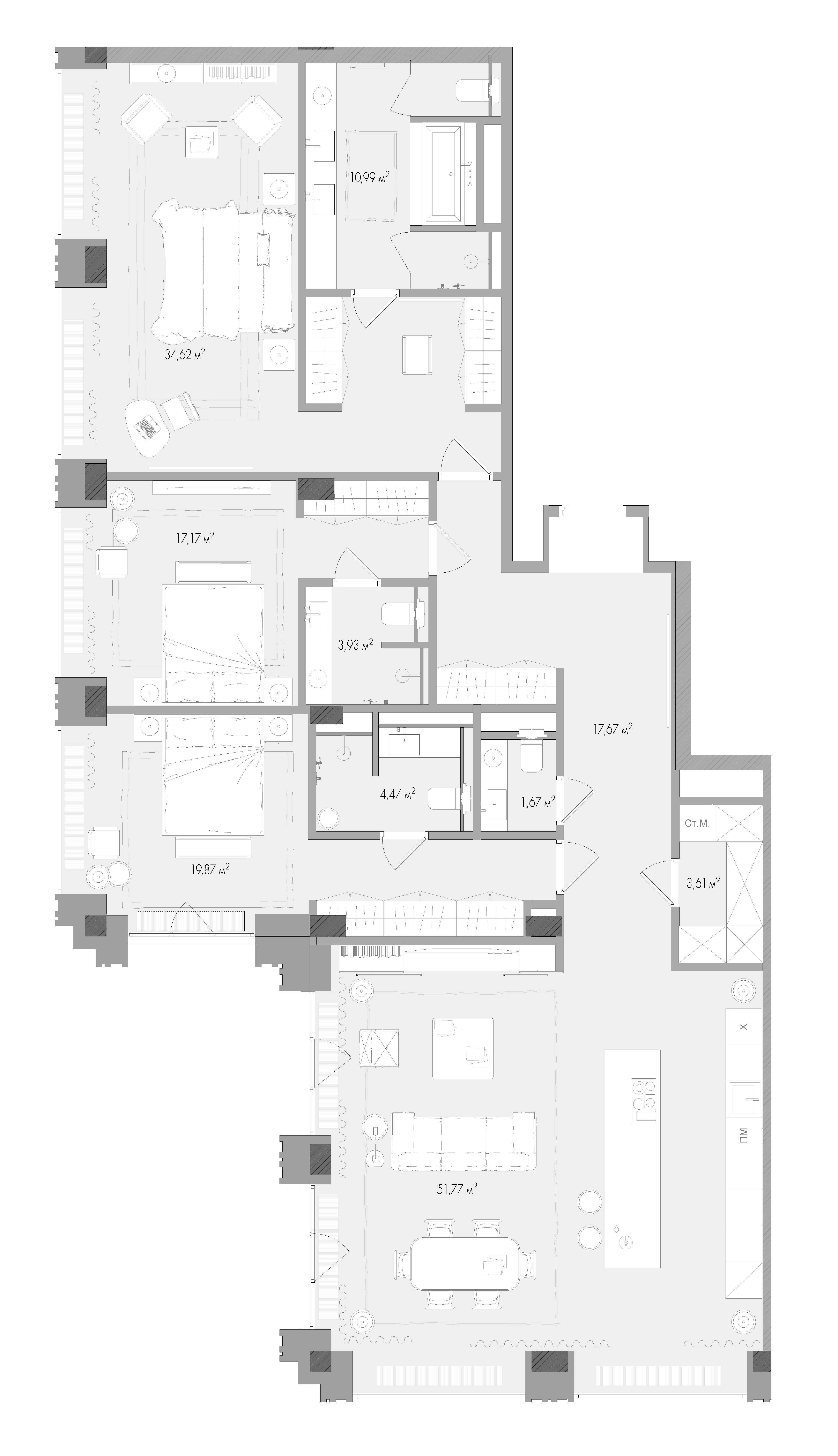 Минимальная площадь: 48,9 м² Максимальная площадь: 169,8 м²