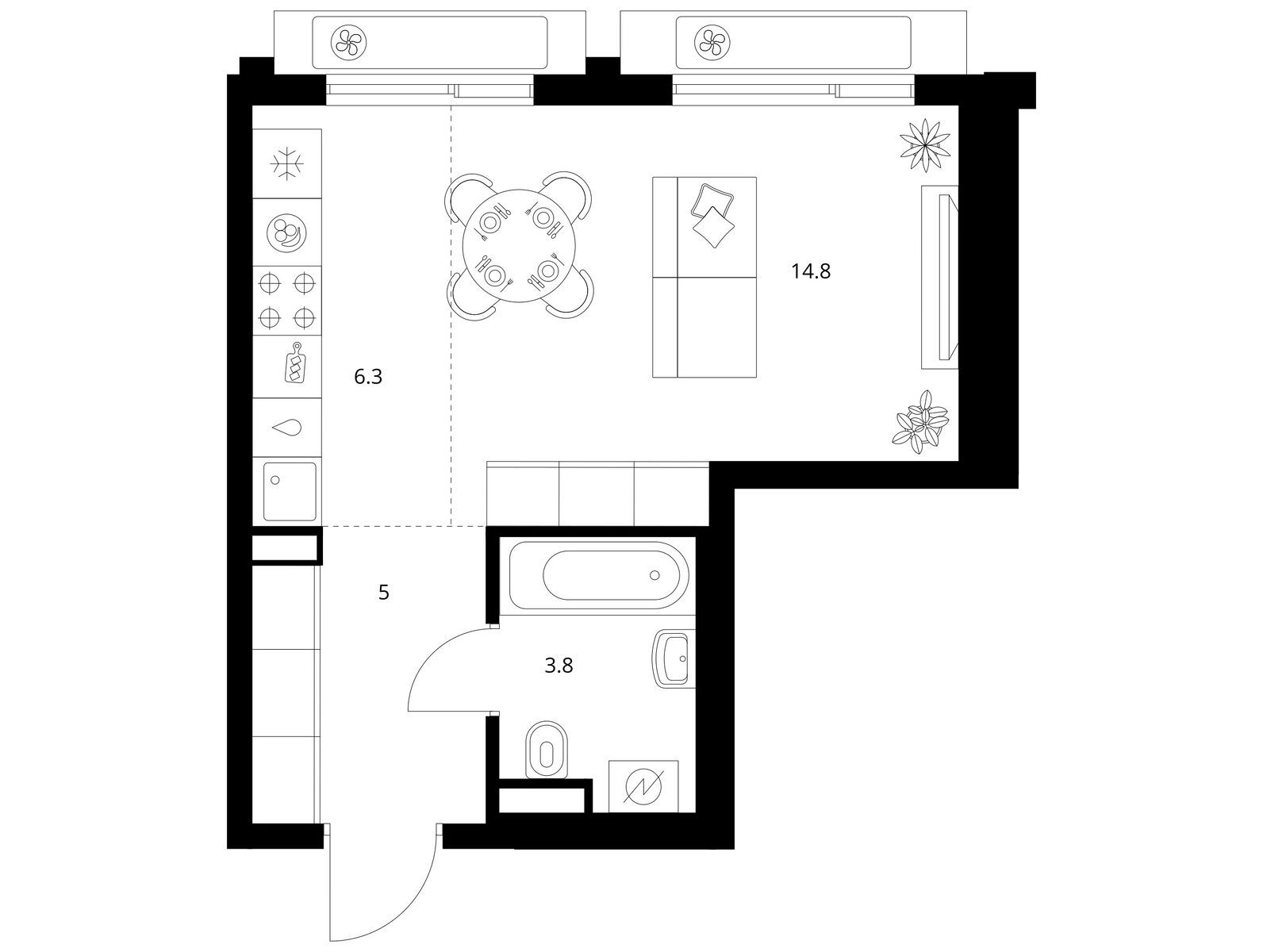 1-комн · 32 м² · 14/32