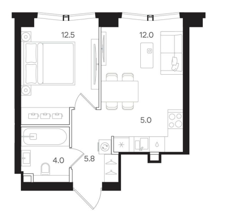 1-комн · 40 м² · 34/40