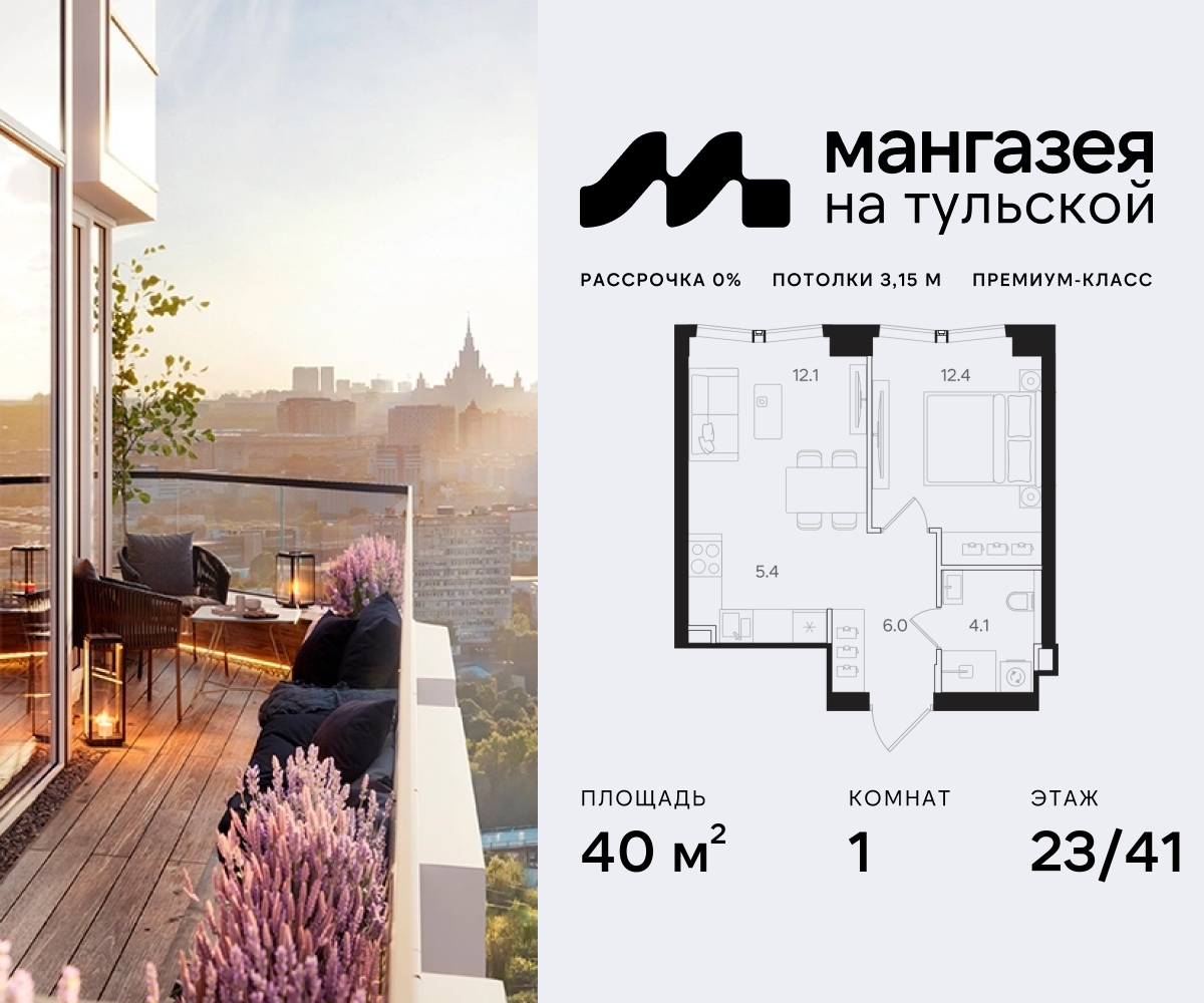1-комн · 40 м² · 23/40