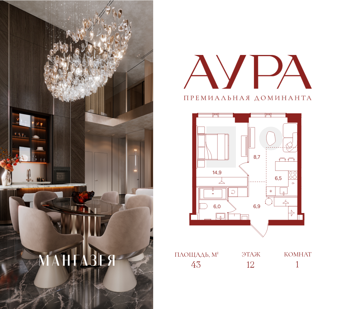 Проект "АУРА" (прежнее название "Мангазея на Тульской") строится в пешей доступности от станции метро "Тульская". Застройщик позиционирует проект как бизнес+ и новостройка будет состоять из двух жилых небоскребов - Серебряной башни, высотой в 41 этаж, и Бронзовой башни, высотой 42 этажа, а также бизнес-центра, высотой 28 этажей. Над архитектурной концепцией проекта работали специалисты российского бюро IND ARCHITECTS, каждая из башен будет иметь свой облик.