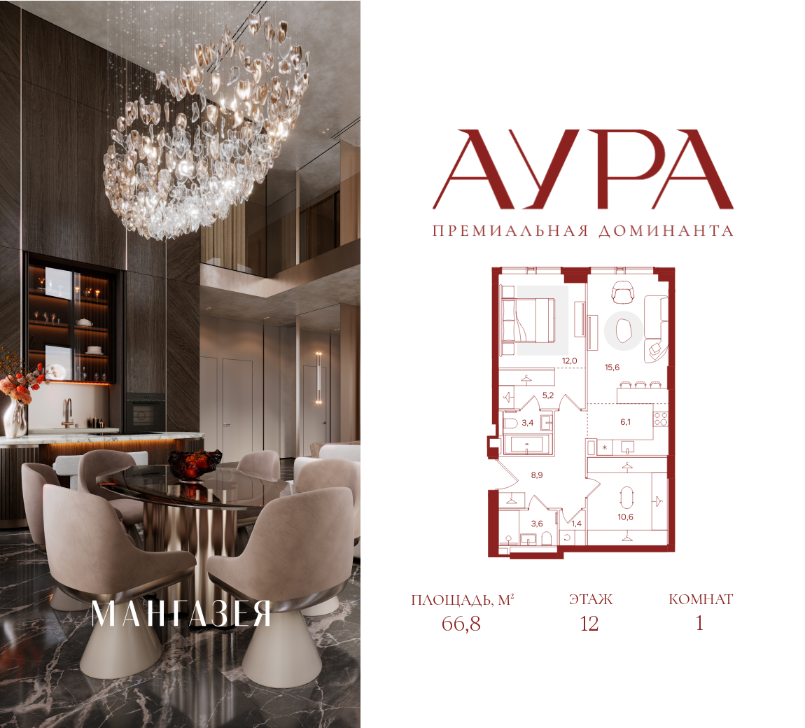 1-комн · 67 м² · 12/40