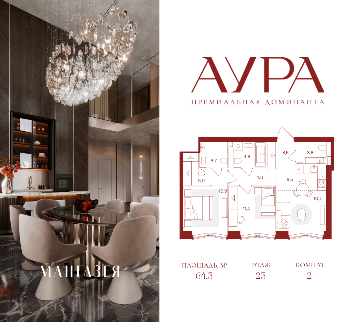 2-комн · 64 м² · 23/40