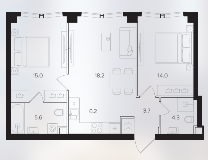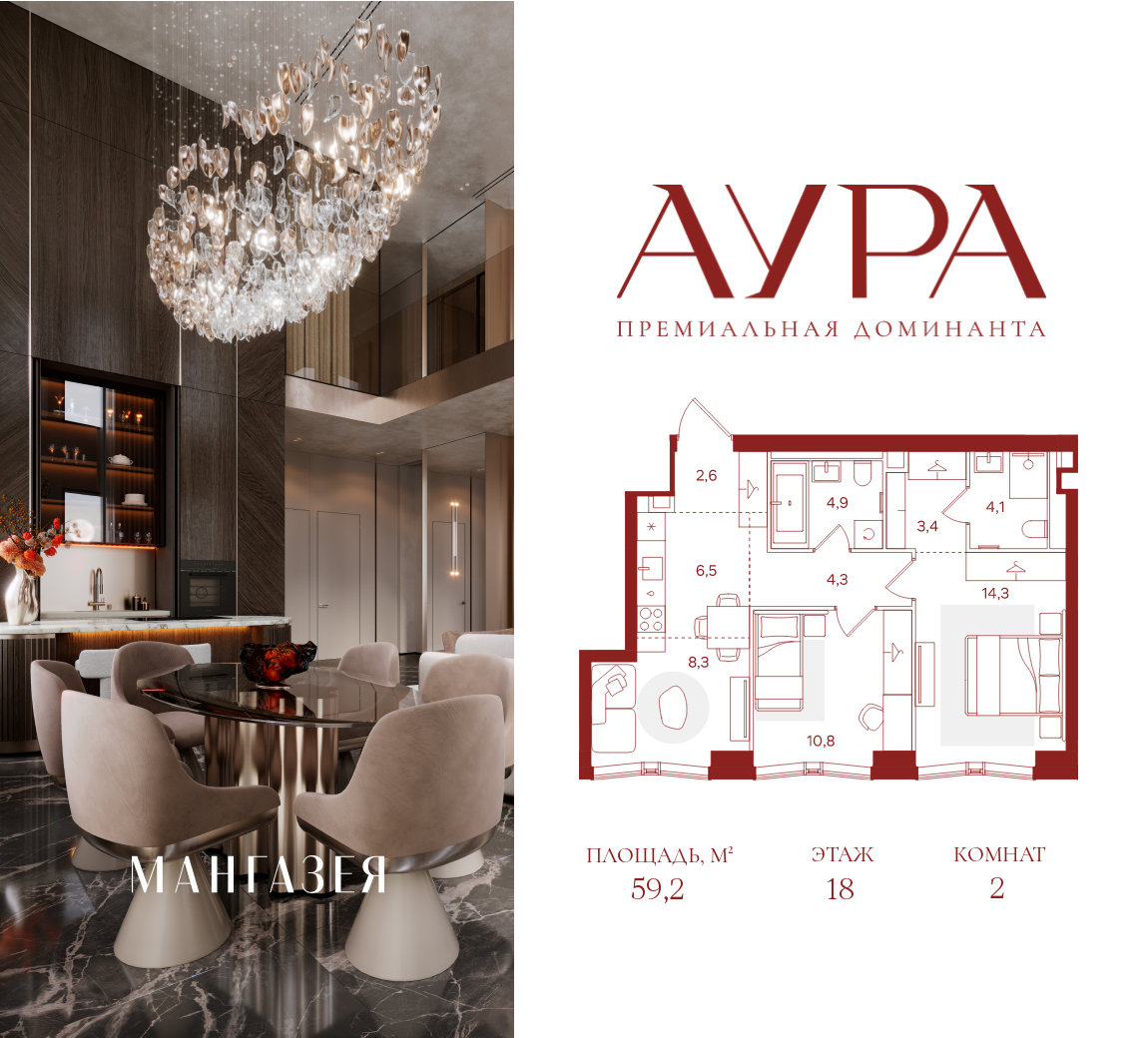 2-комн · 59 м² · 18/40