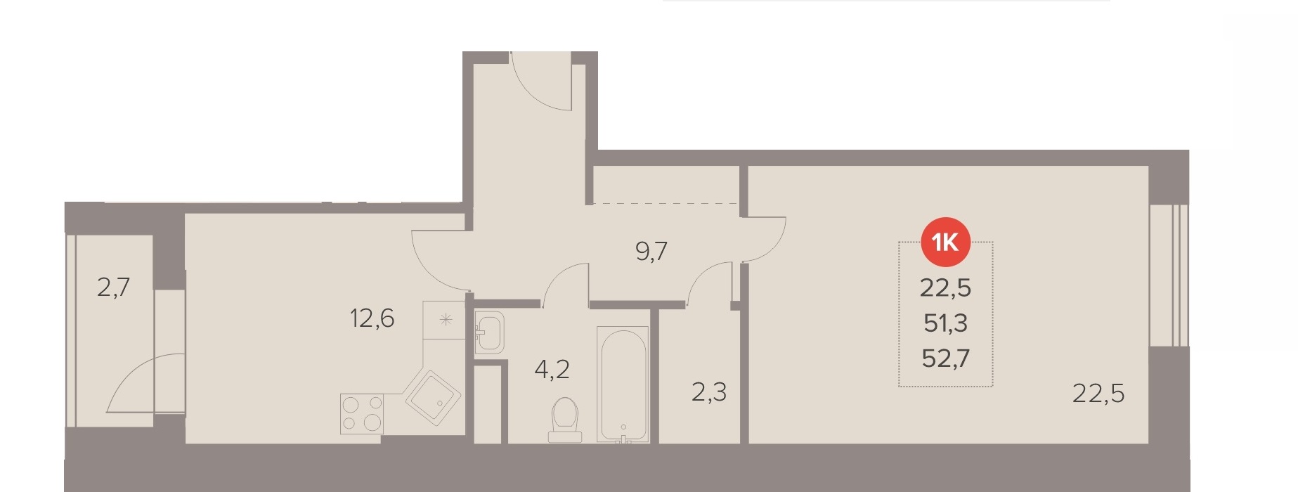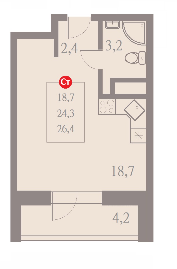 Студия · 26 м² · 2/22